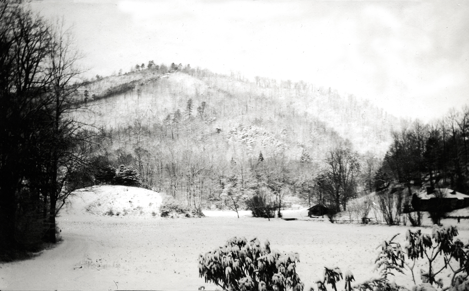 [View across campus toward Grapevine Knoll, in snow, c. 1946.] [nace_1_028b.jpg]