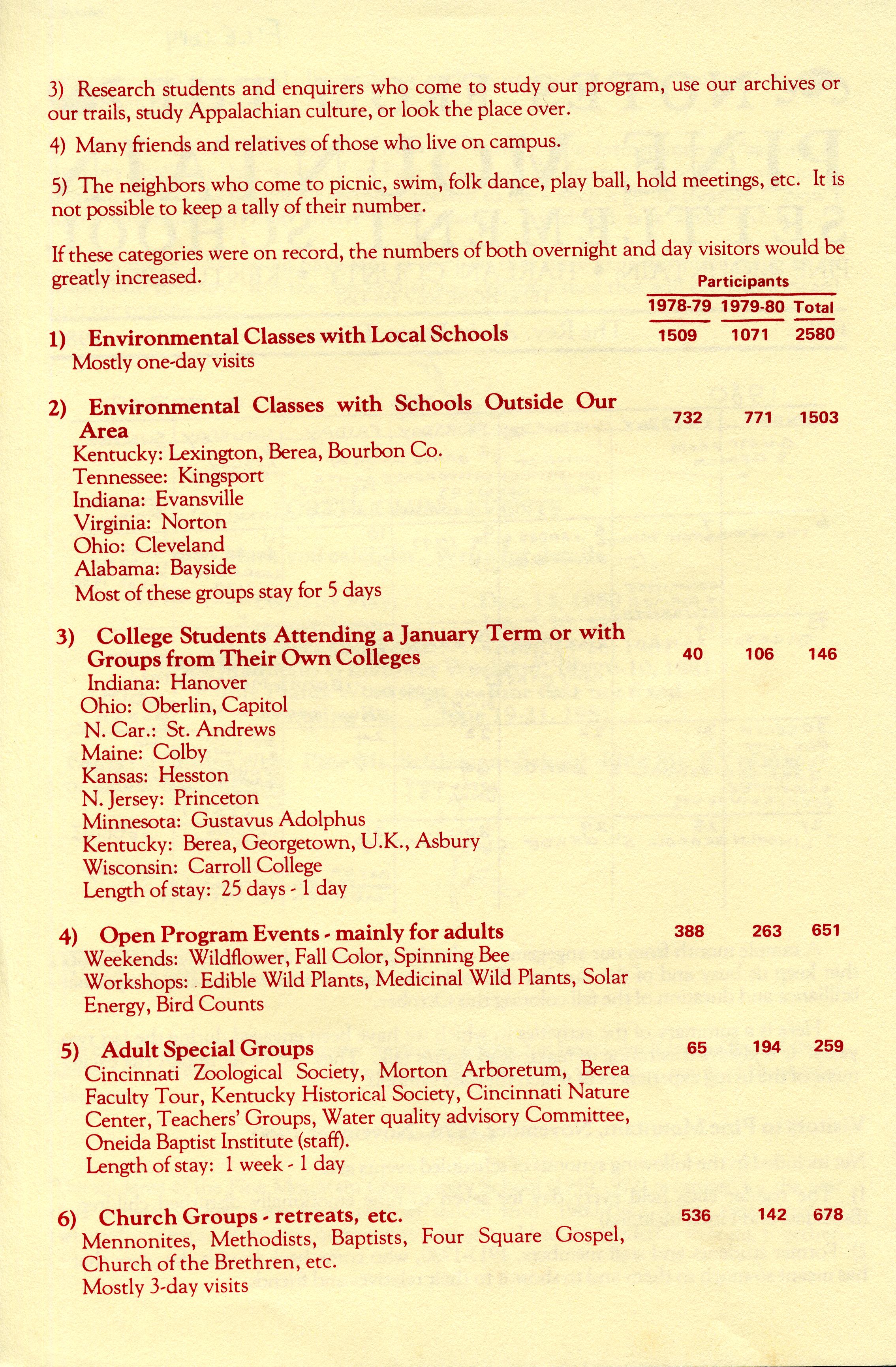 3) Research students and enquirers who come to study our program, use our archives or our trails, study Appalachian culture, or look the place over.