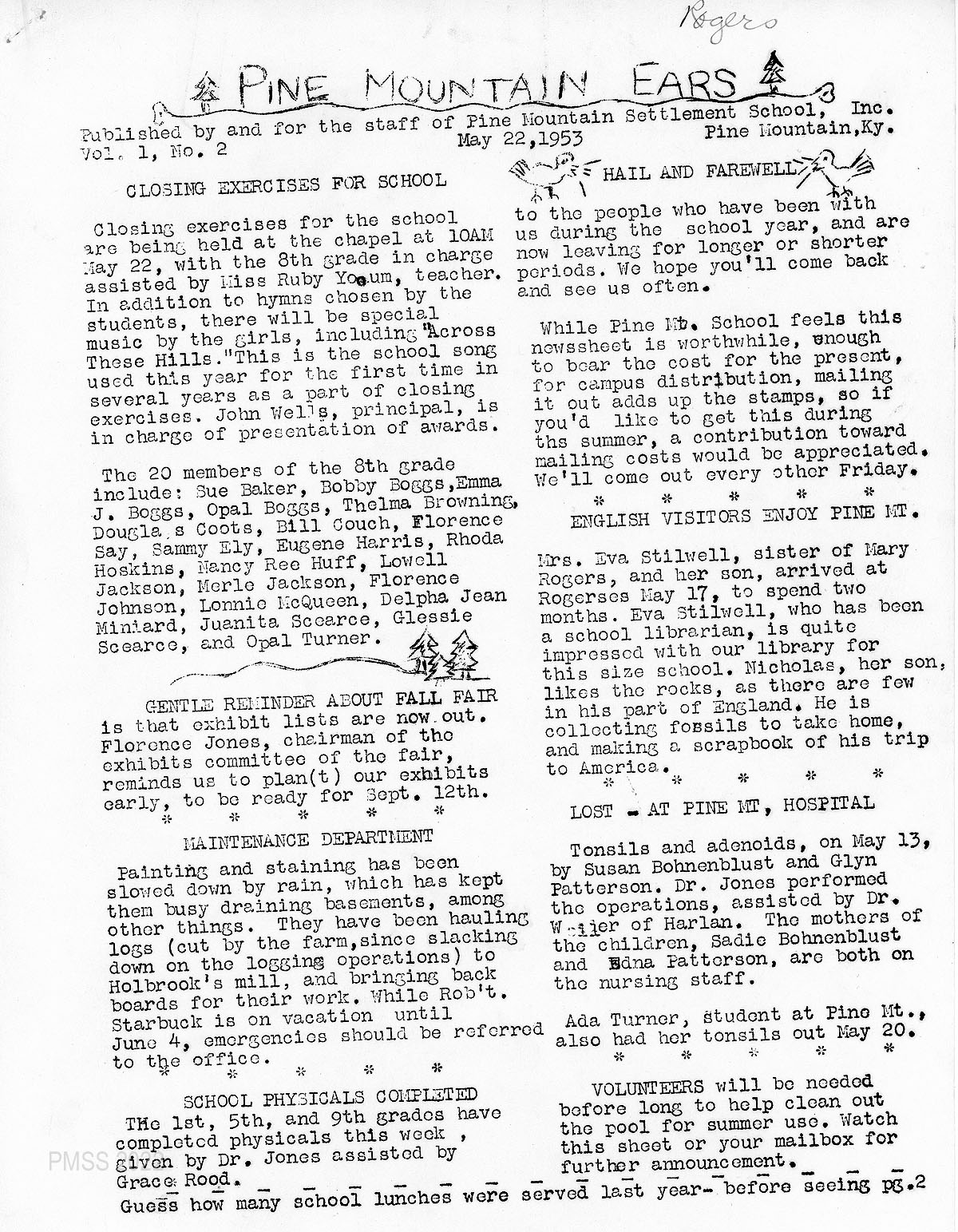 - Pine Mountain Ears, May 22, 1953, p. 2. [pmss_ears_1953__05_22_002]