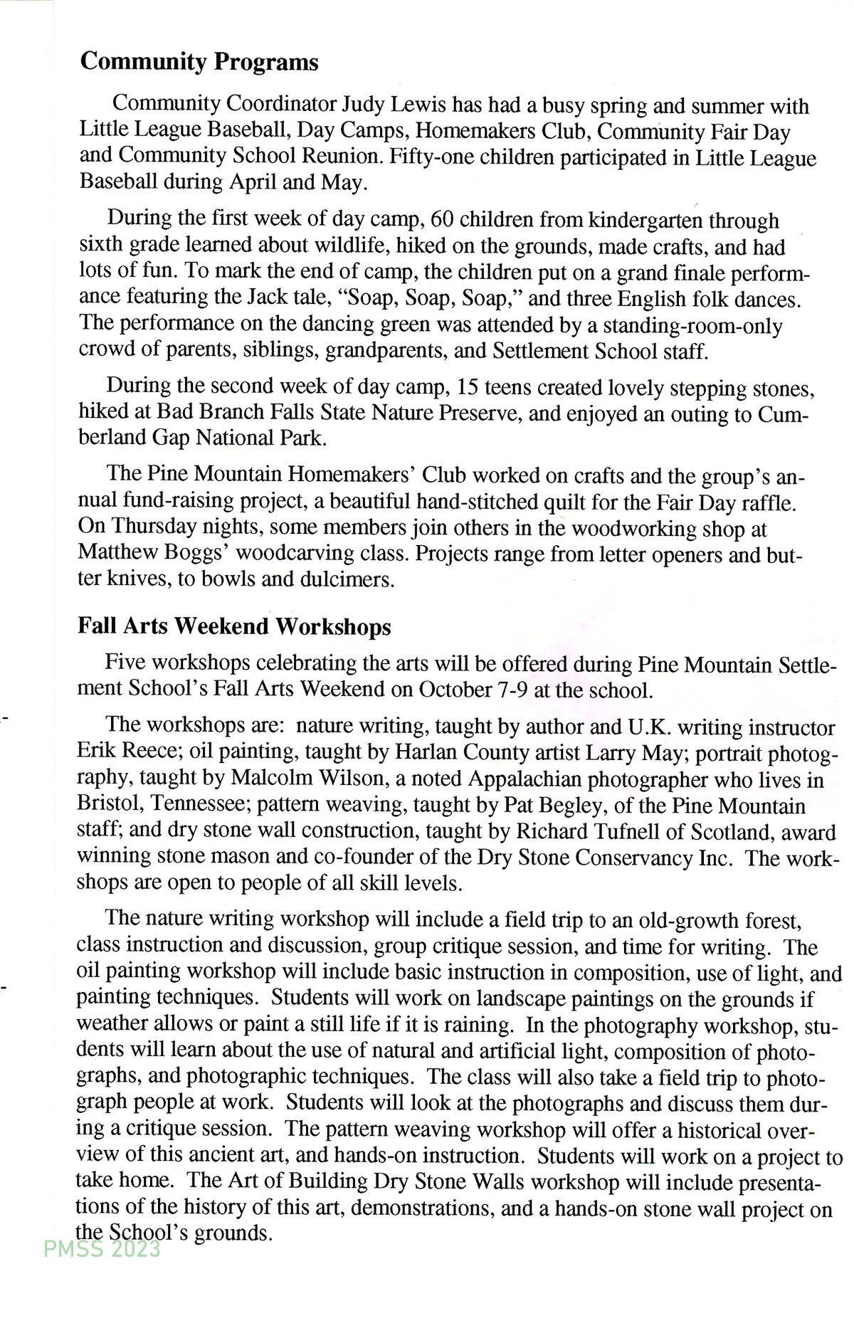 You can keep up with Pine Mountain news on our website: www.pinemountainsettlementschool.com