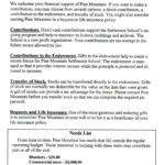 Bequests and Life Insurance. One of the most generous and enduring gifts is to remember Pine Mountain in your will or to list it as a beneficiary of your life insurance policy.