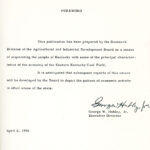 The subject matter relates primarily to population shifts, major fields of economic activity, the pattern of employment wages and per capita income, and bank deposits in showing developments within the area during the recent past. An effort has been made to indicate comparable trends both on a national and state level reports of Kentucky’s Department of Economic Security, the Department of Rural Sociology, and the Bureau of Business Research of the University of Kentucky. The Federal Reserve Bank, the US Bureau of Census, and other releases have served as sources of information.