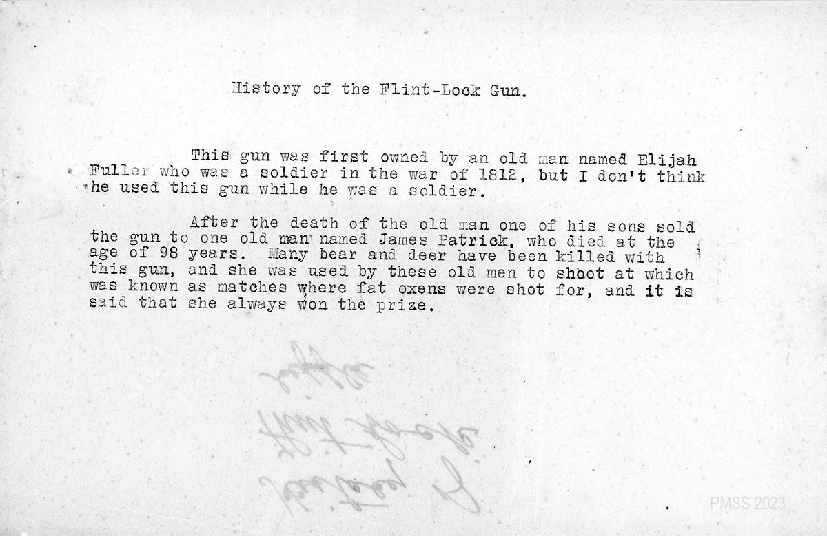 “This gun was first owned by an old man named Elijah Fuller, who was a soldier in the War of 1812, But I don’t think he used this gun while he was a soldier..