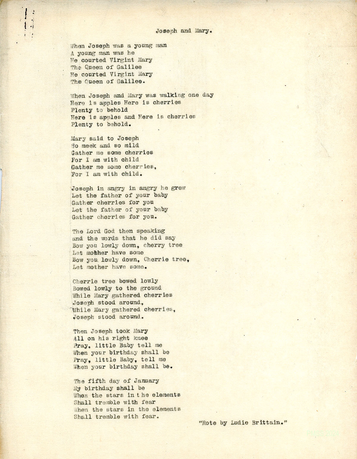 TAGS: Music, ballads, Pine Mountain ballad favorites, Barbara Allen, Joseph and Mary, Lovin’ Henery, Ballad of Little Oma Wise, Pretty Polly, I Wonder As I Wonder, Nightingale, The Riddle Song, I Wonder When I Shall Be Married, Old Smokey, Ballads to the Tune of Durham Reel