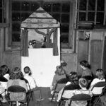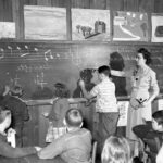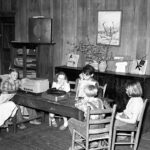 This small group of photographs taken by Arthur W. Dodd capture the instruction in a music class for children at the School in the 1940s. The instructor, Golda Pensol was a highly skilled teacher who had a particular interest in music. The class was offered as an extra curriculum opportunity for interested students.