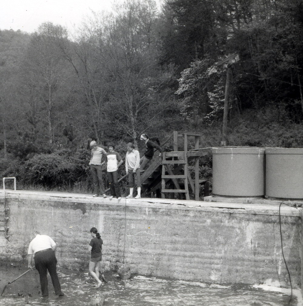 The Pine Mountain Pool’s original concrete structure was fed by water from the cool Limestone Creek that runs from the School’s Reservoir. The water was of excellent quality and was exceptionally cold in temperature. It was ironic that the “filtering” of the pool water with a full filtration system was filtering water that was some of the purest water in the State … as well as the coldest! Limestone Creek supplies the Reservoir and the Pool and is some of the best water in Eastern Kentucky. Recently, the reservoir water that supplies the campus has been declared one of the safest public water supplies in the State.