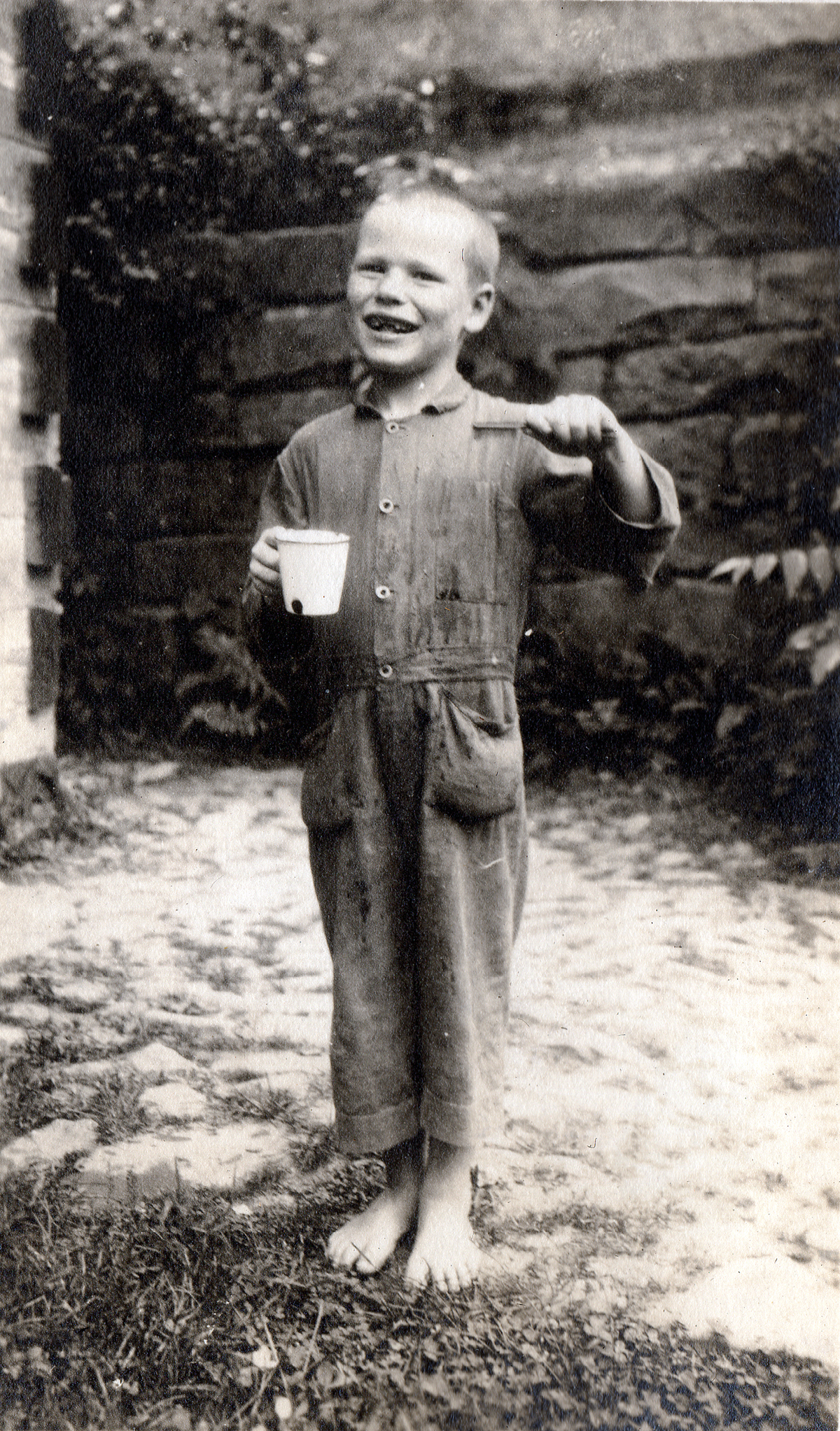 - Maya Sudo Album: Small boy with cup and toothbrush, practicing “good dental hygiene.” 021c