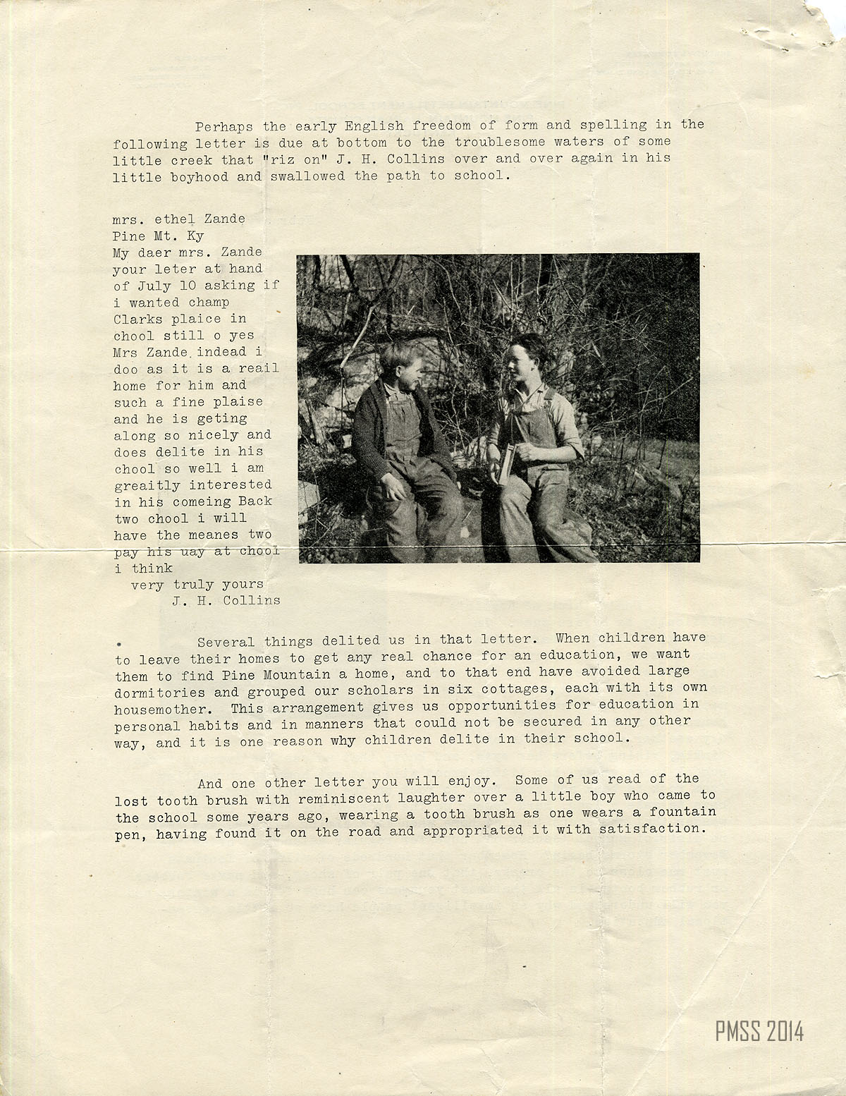 We are printing here three letters from our Pine Mountain mail bag to refresh your memory of our shut-in mountain country, and of the School’s ideals.