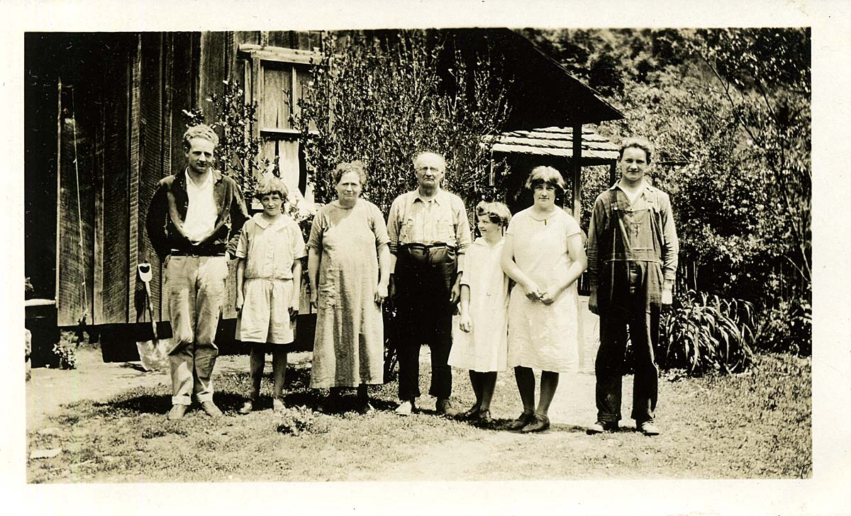 “I believe this picture was taken at or near Pine Mt. circa 1929/29 when my father, Kendall Bassett, was a teacher there [far left]. I grew up with his stories of his time there from Antioch College. He knew Ethel de Long well, worked with Mr. Zande in his shop, & I believe helped bury Mrs. de Long Zande. I don’t know who these people are/were but perhaps it might go into the archives.” Beth (Bassett) del Negro. (The family shown in the photograph is the Harrison Halcomb Family.) [dal_negro_005x.jpg]