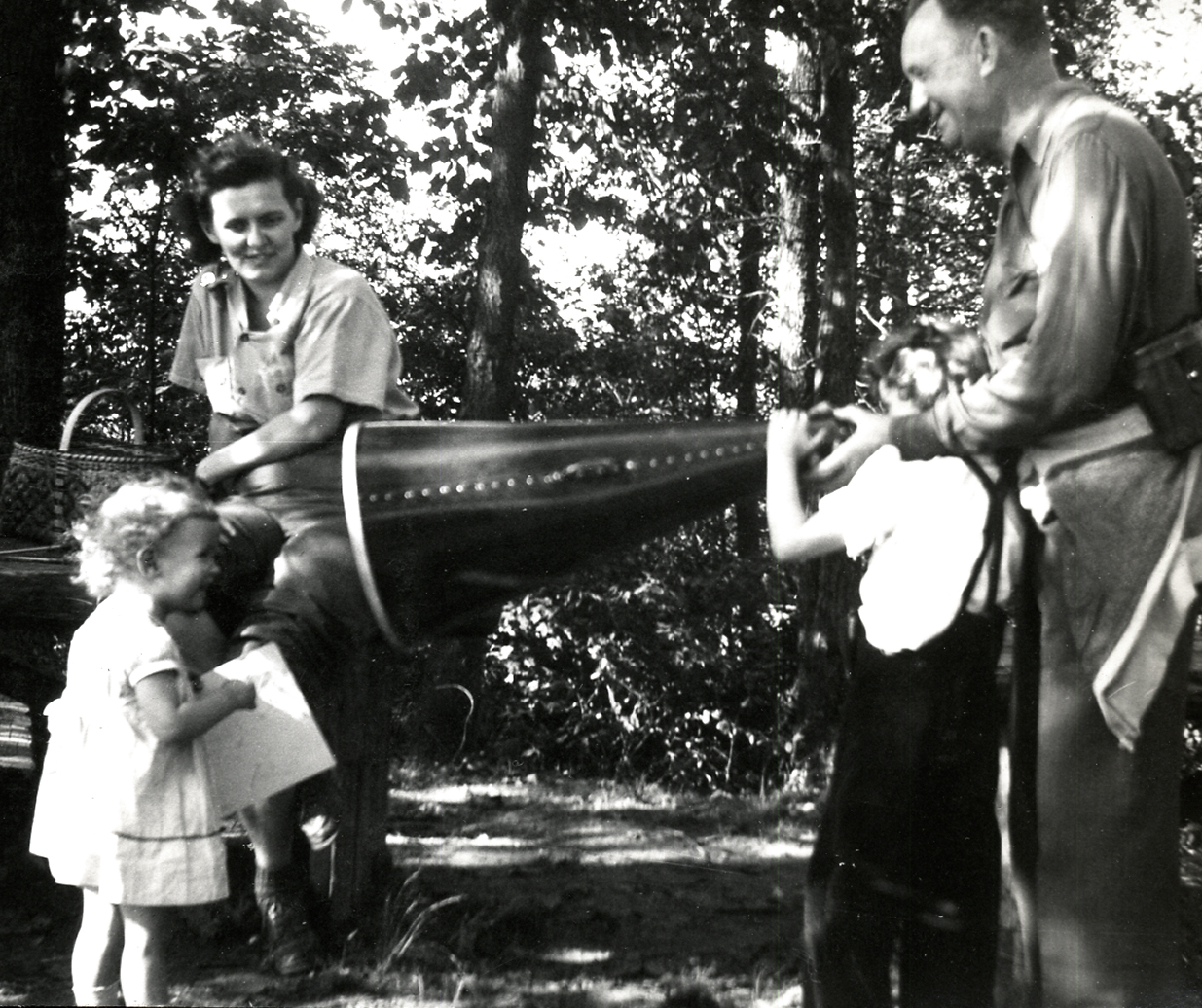 - Mountain Day, 1947. Mr. Benjamin, Libby and Margaret Dodd, Janice, Allen, [?] [nace_1_075c.jpg]