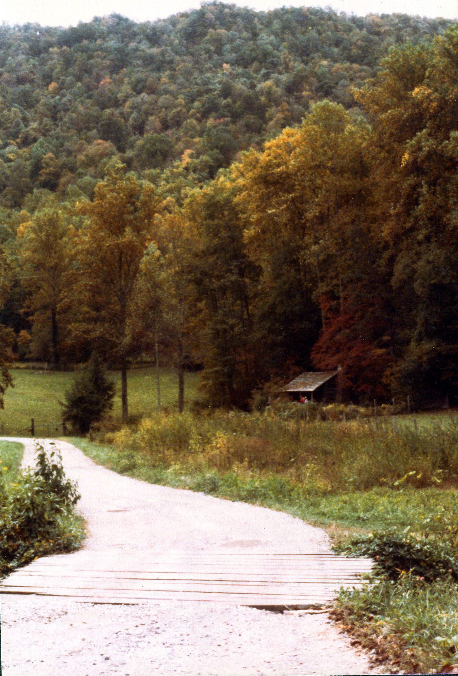 - Creech Cabin and road, fall view. [II_11-02_creech_cabin_0408j-2.jpg]