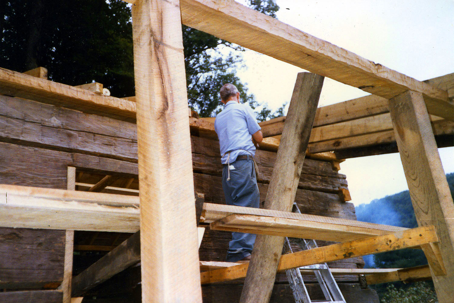 - Moving and restoring cabin, 1990. [II_11-02_creech_cabin_0408p-2.jpg]