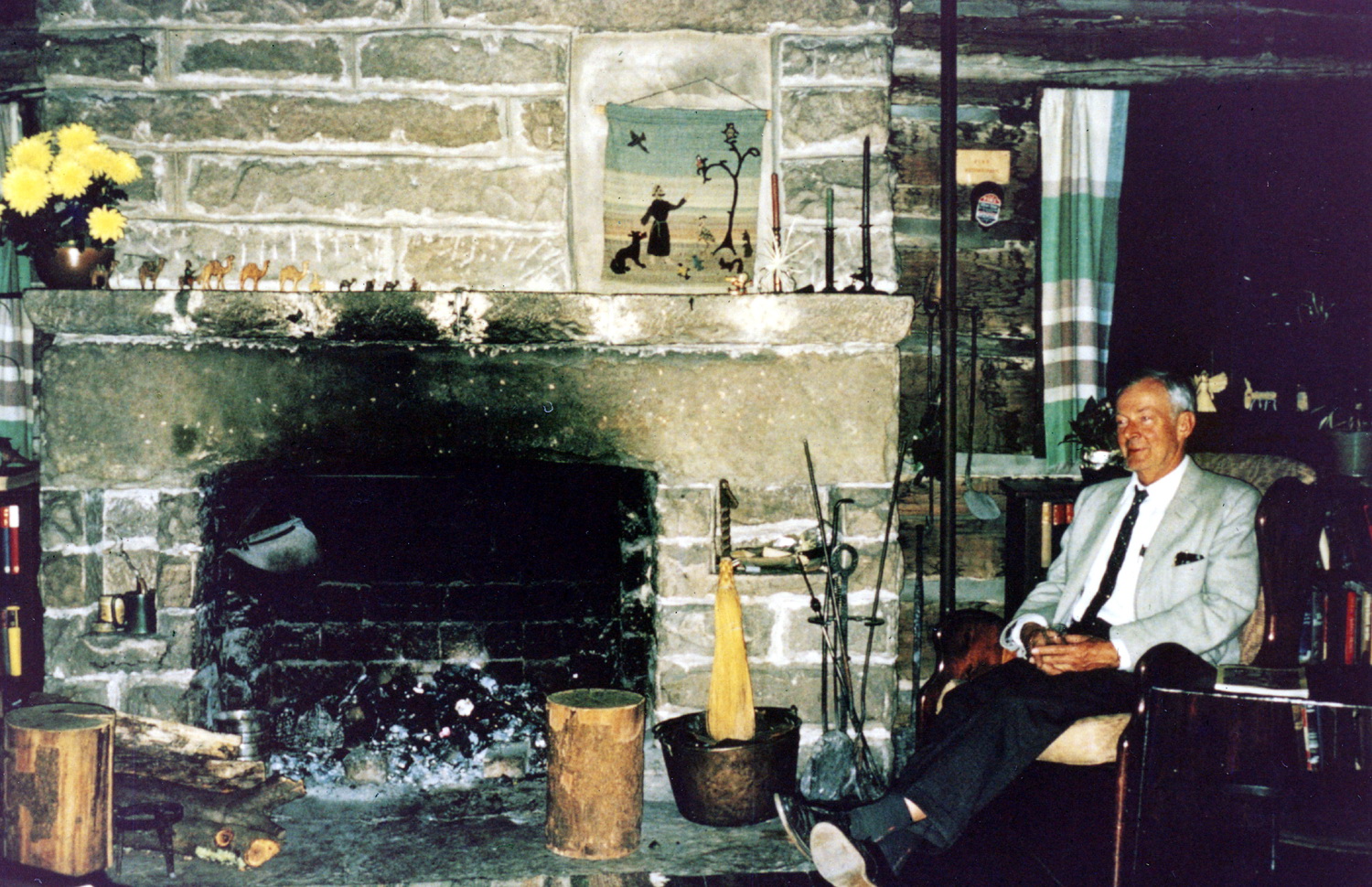 - Burton Rogers seated in chair in Big Log living room. [X_100_workers_2598a_mod.jpg]