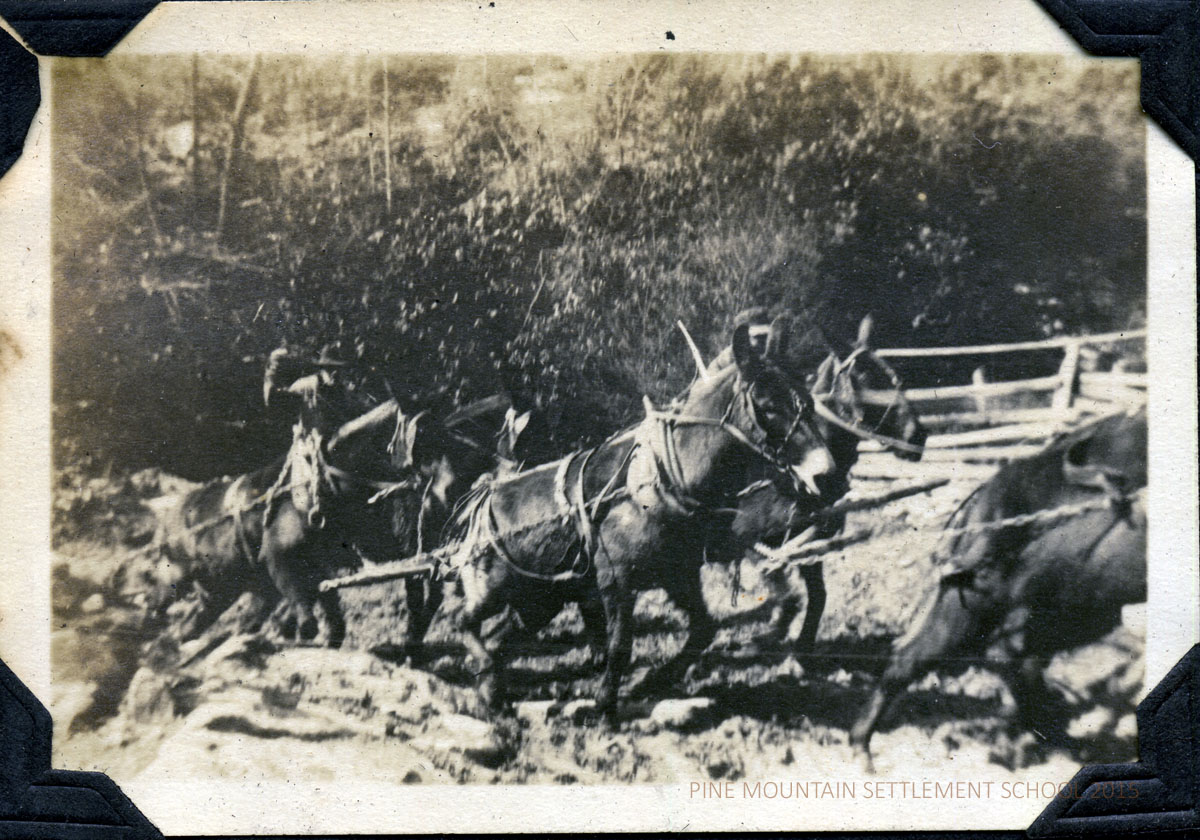 The album was donated to Pine Mountain Settlement School in June 2011 by Angela Melville’s niece, Ann Melville Wilson. The donation included the photograph album as well as newspaper clippings and a small booklet written by Angela Melville in 1957 for her nieces and nephews, called “Woodboo – 1957,” that describes her former home and life.