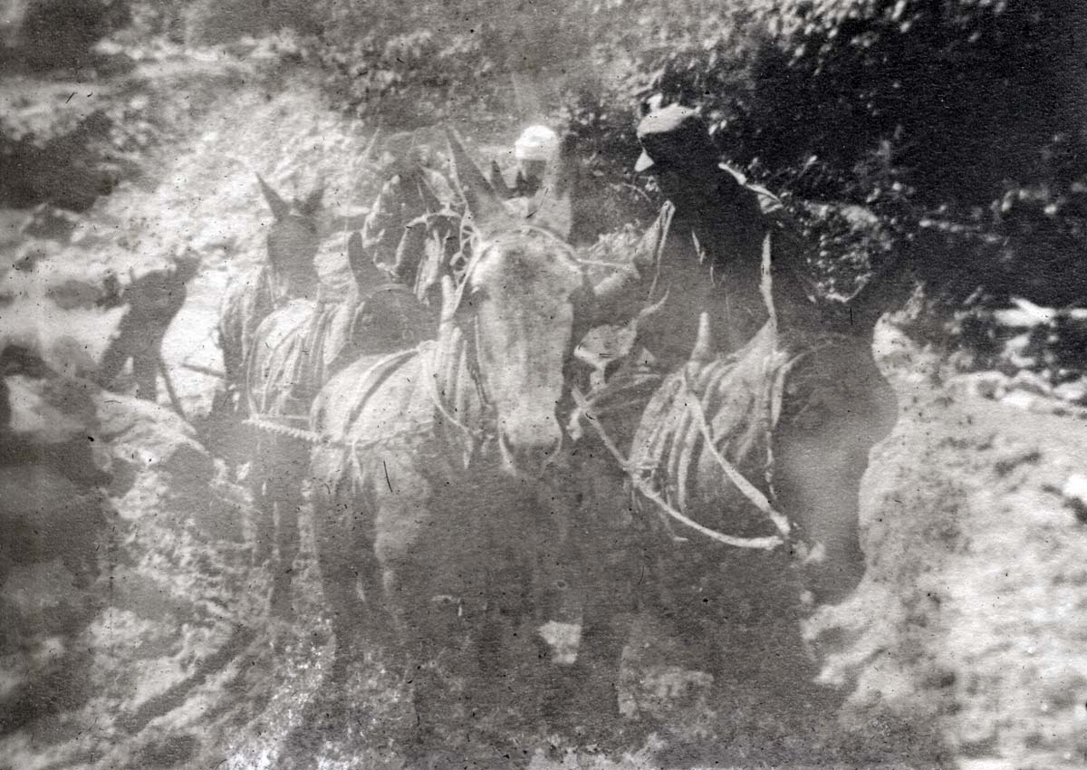 The condition of the photograph album is very poor. Many of the images were damaged by moisture and were adhered to one another or were badly stained or showed substantial emulsion-shift. Luckily, many of the damaged images are reproduced in other staff collections. Pine Mountain is beginning the process of restoration of many of the images and they are being placed alongside the damaged items in the various Parts I, II, III, etc. The online album will grow as it will now duplicate images in each Part. Please excuse the inconvenience as we shift images and add the new modified images.
