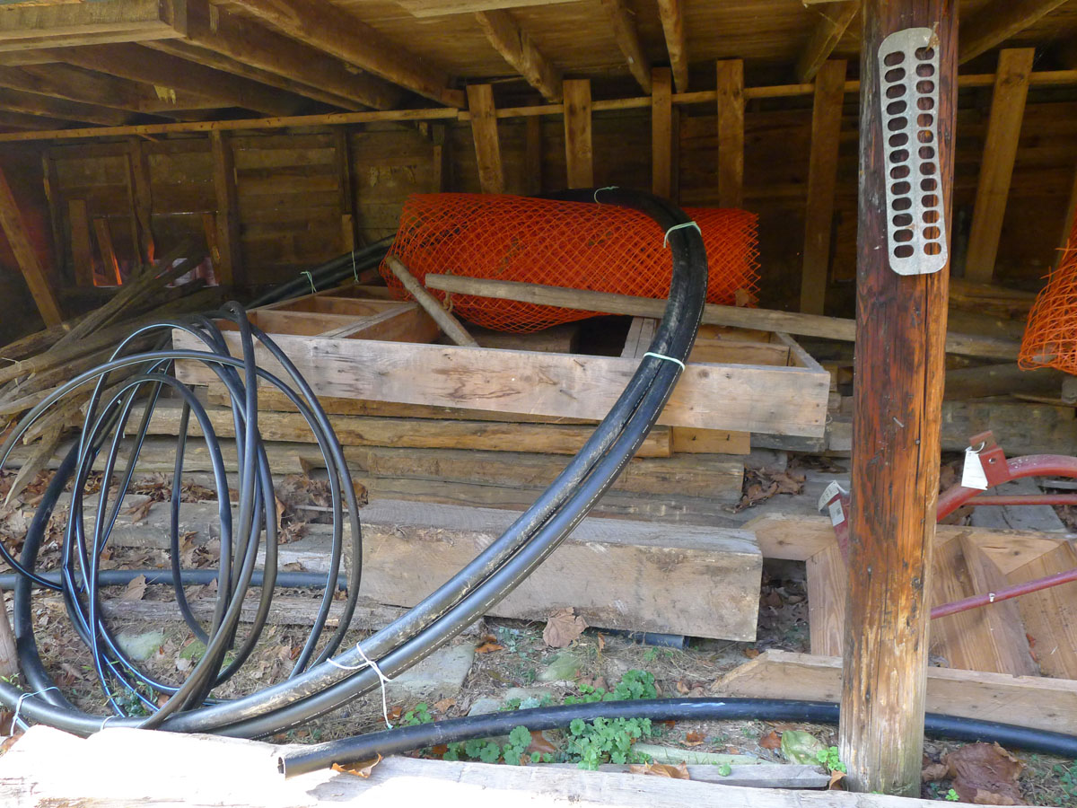 - Barn. Logs stored from Hayes Cabin.