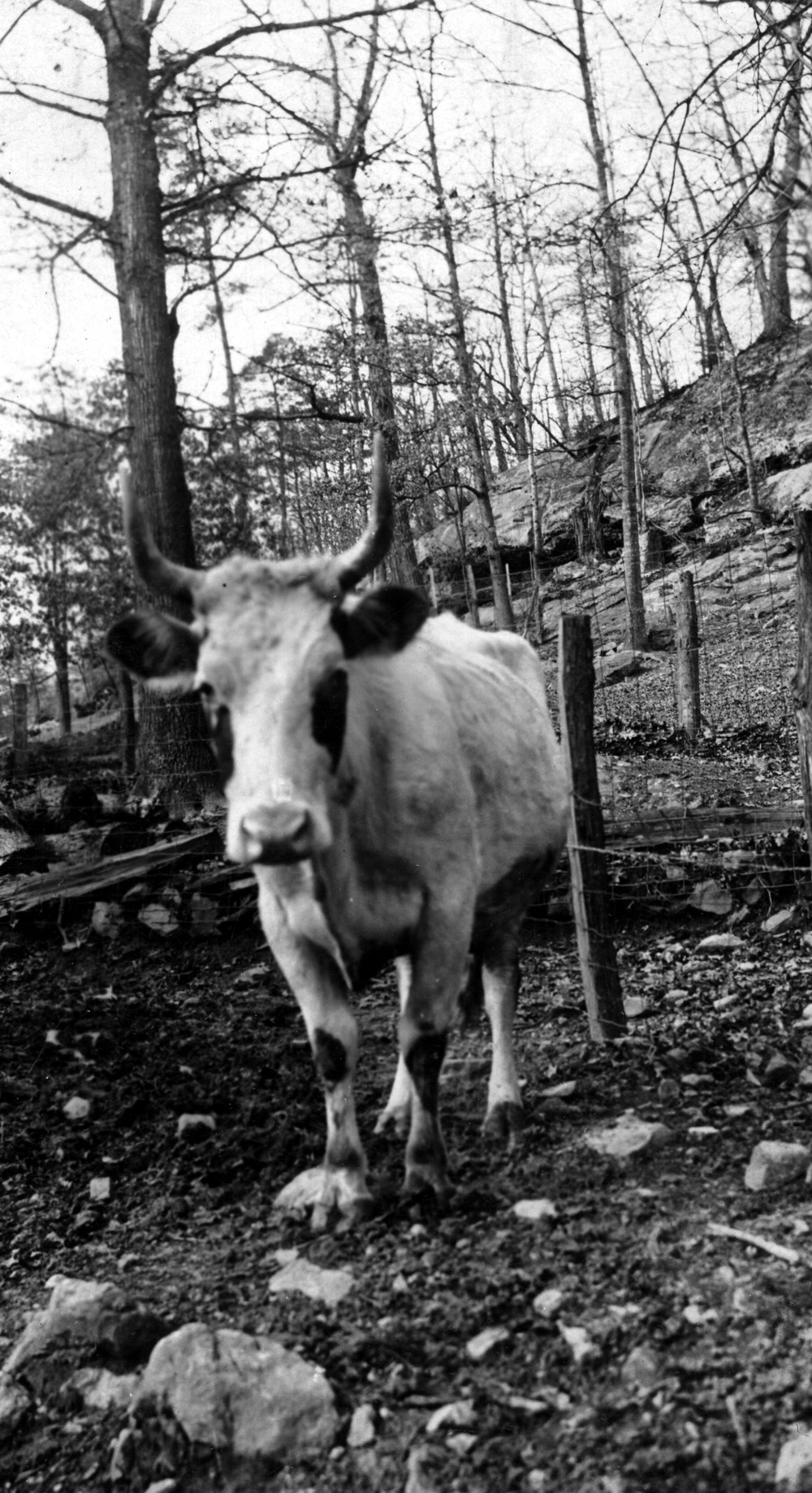 The terrace at the back of the barn was constructed of large, flat stones. It reaches from the hallway on the east end of the barn to then silo on the west end. Being about ten feet wide it extends to the ditch which drains part of the barnyard. This terrace is a great improvement over the original bed of slate and coal slake. The cows do not have to stand in the mud, and it helps drainage.