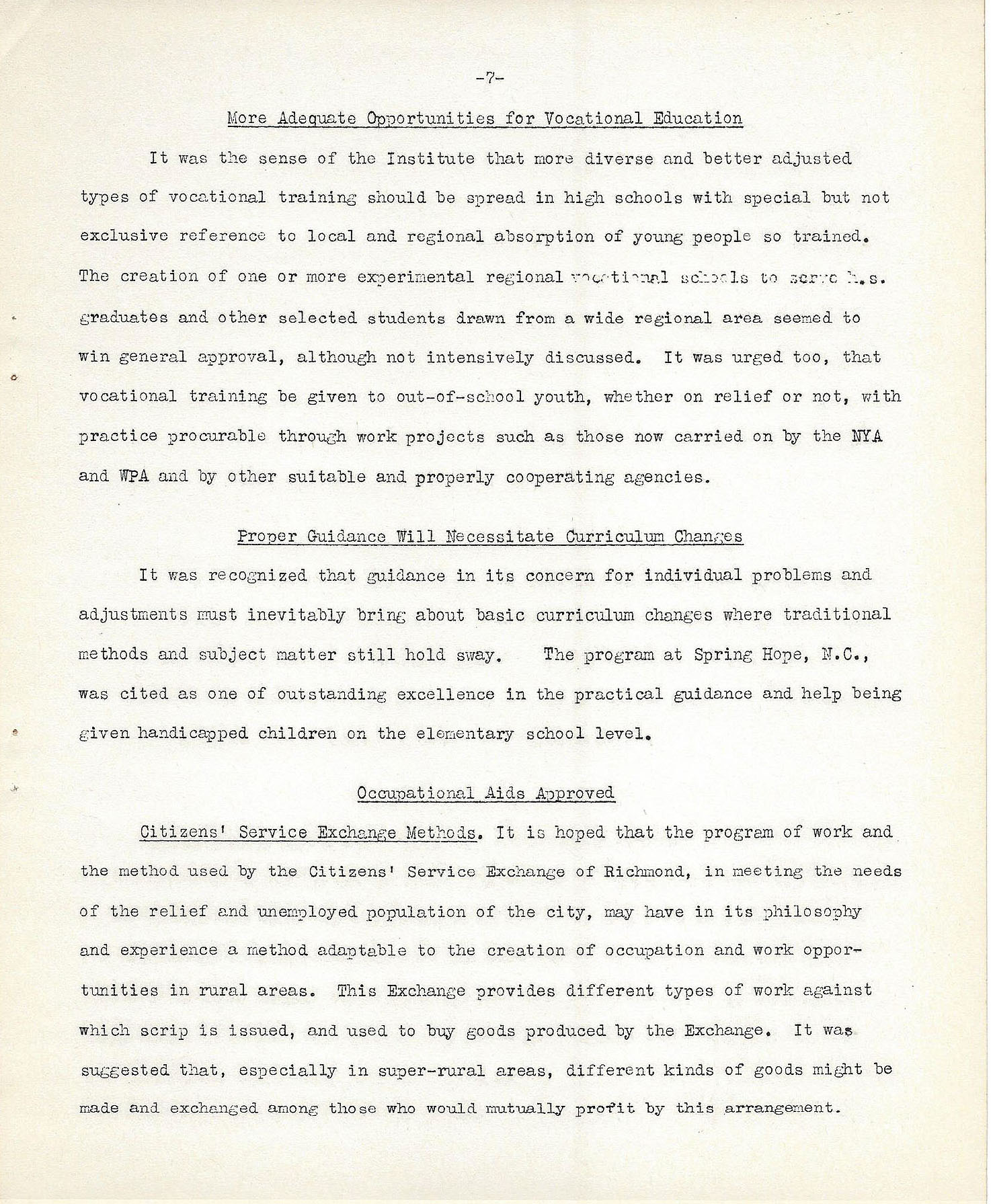 TRANSCRIPTION: RURAL YOUTH GUIDANCE INSTITUTE 1937 Findings