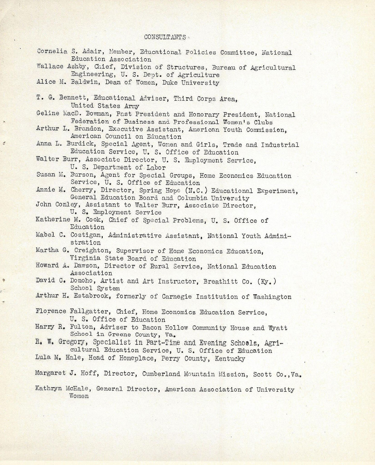 1. Recognizing the need for training in homemaking for rural girls over 14 years of age, and realizing that if these girls are to be reached it must be in the elementary school, we recommend that the states investigate the possibility of developing vocational programs in homemaking for these girls.