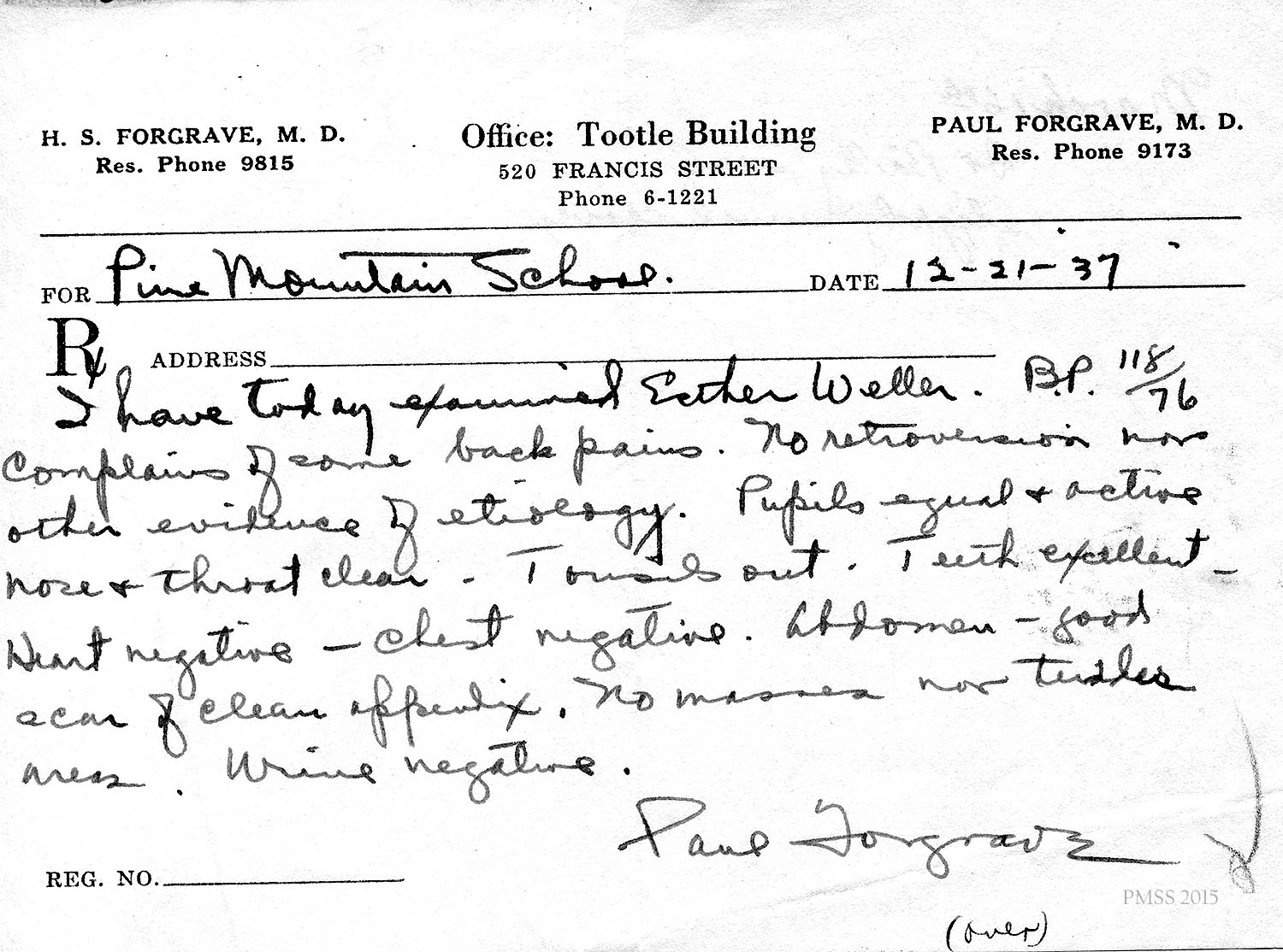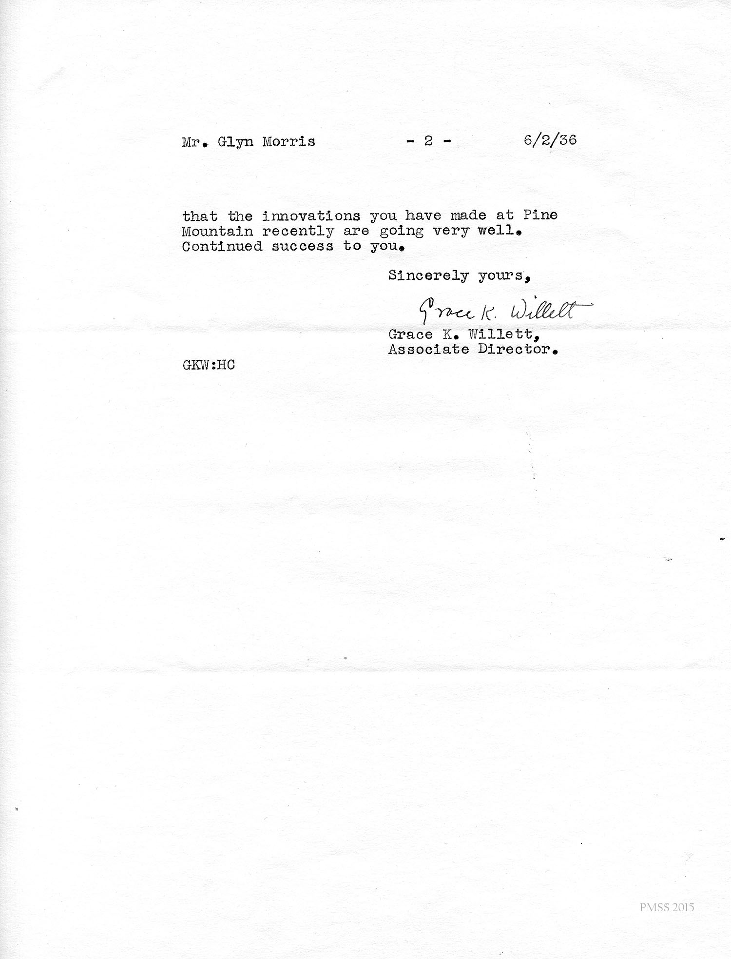 I am enclosing the credentials for Esther Weller, one of our senior girls who is applying for Georgia Thomas’s position at Pine Mountain. You will notice that Miss Weller has had a varied experience on her co-operative work. All of these positions, at the Ohio Soldiers’ and Sailors’ Orphans’ Home, and the Children’s Village, and Hessian Hills, have been with children. She has worked with children from kindergarten age through sixth and seventh grades. Her training at St. Joseph Junior College, which was largely in education, dealt with junior high school work. She has, therefore, had a good variety of background and training for such a position as you have to offer at Pine Mountain.