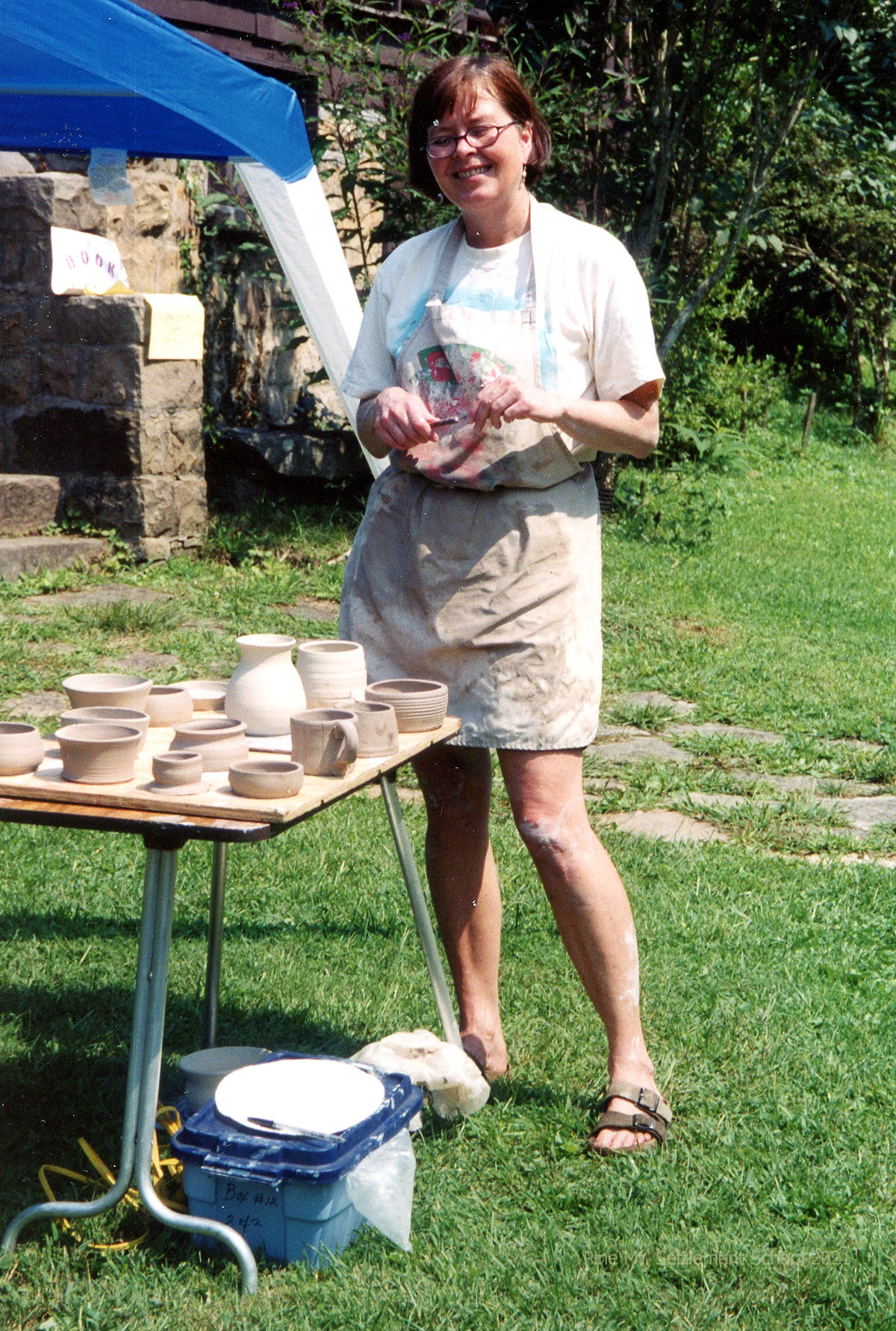 - 0018 Pat Begley with pottery. [fair_day_1999_018.jpg]