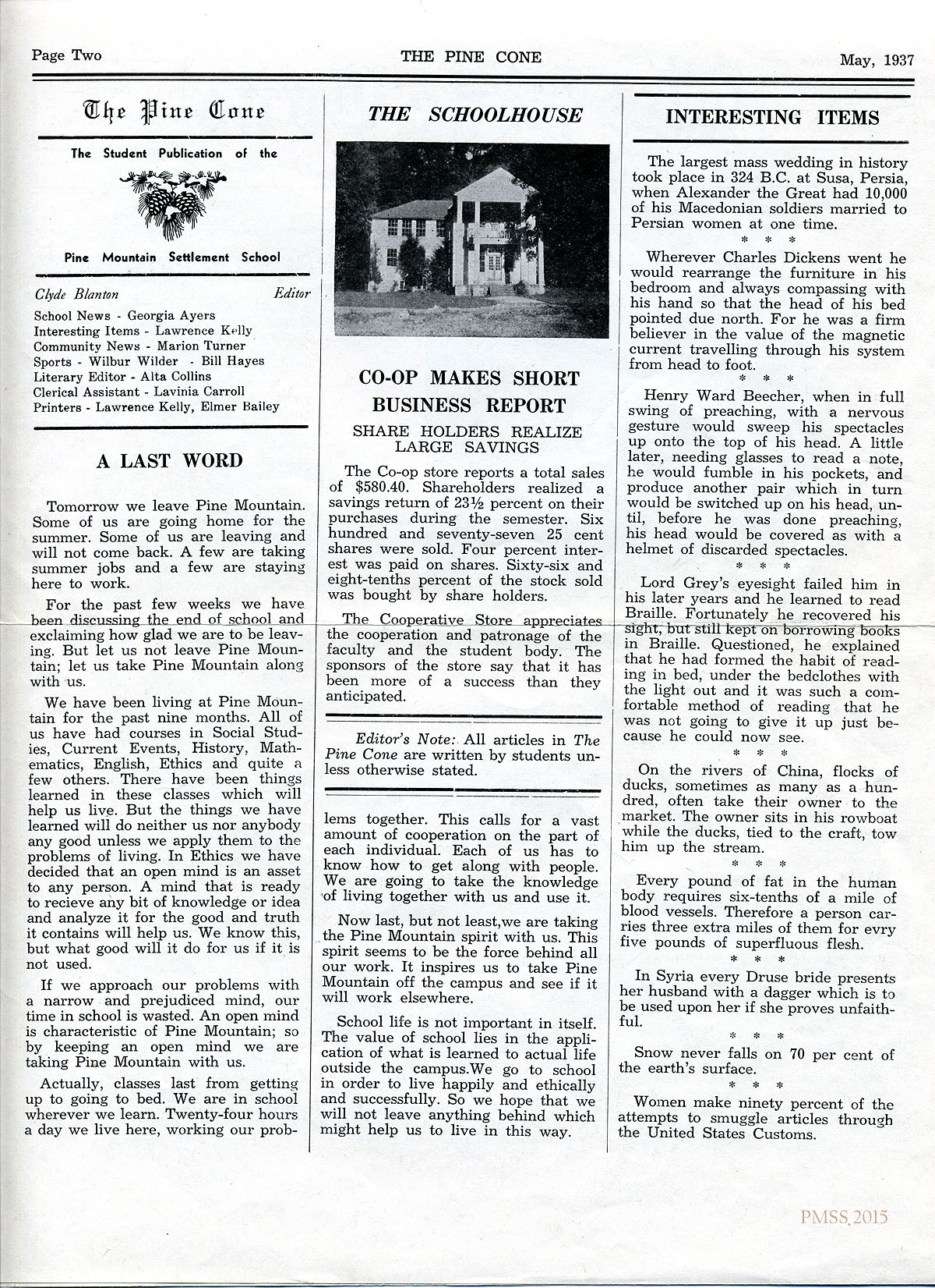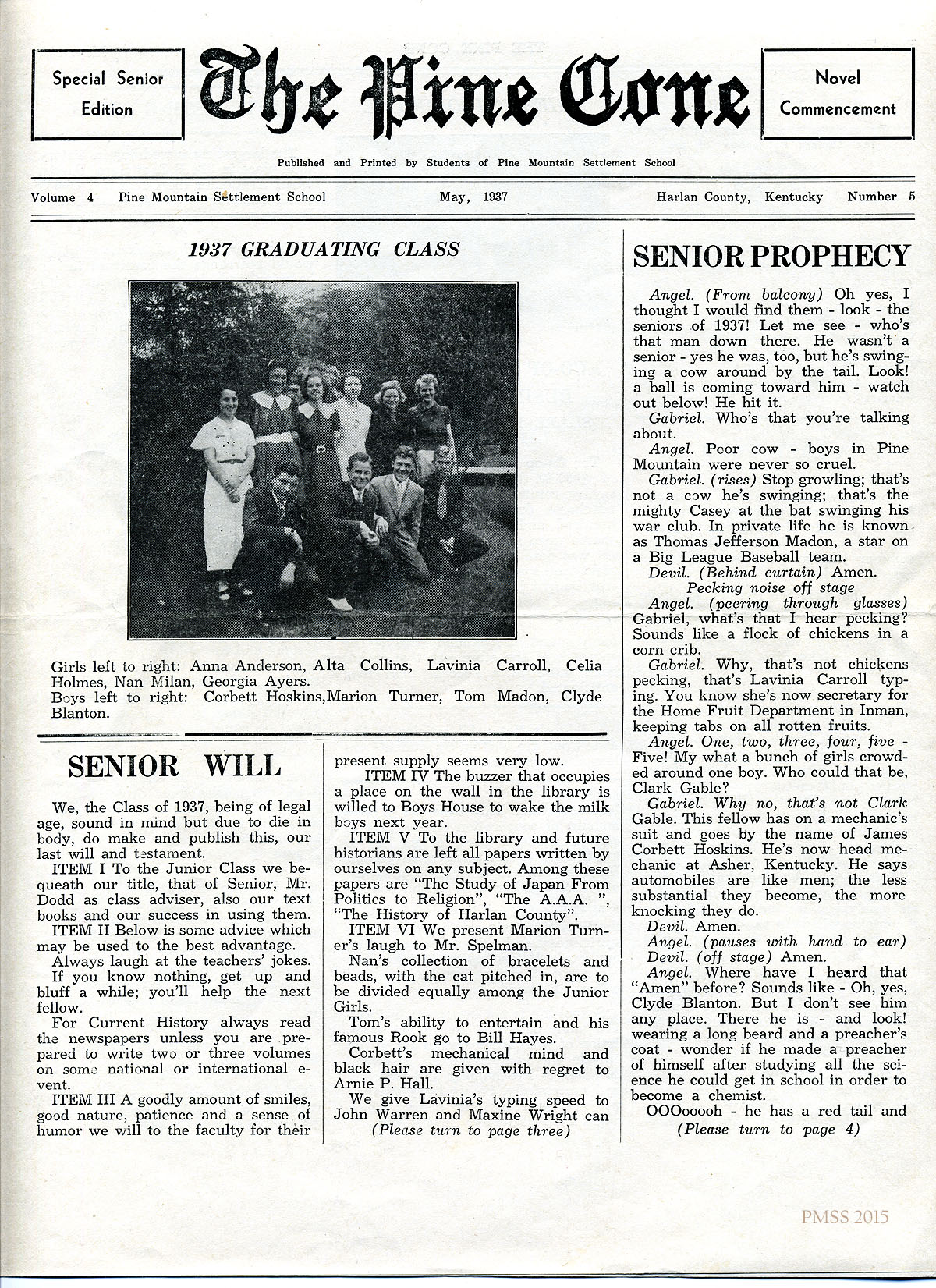 “THE PINE CONE – The Student Publication of the Pine Mountain Settlement School”