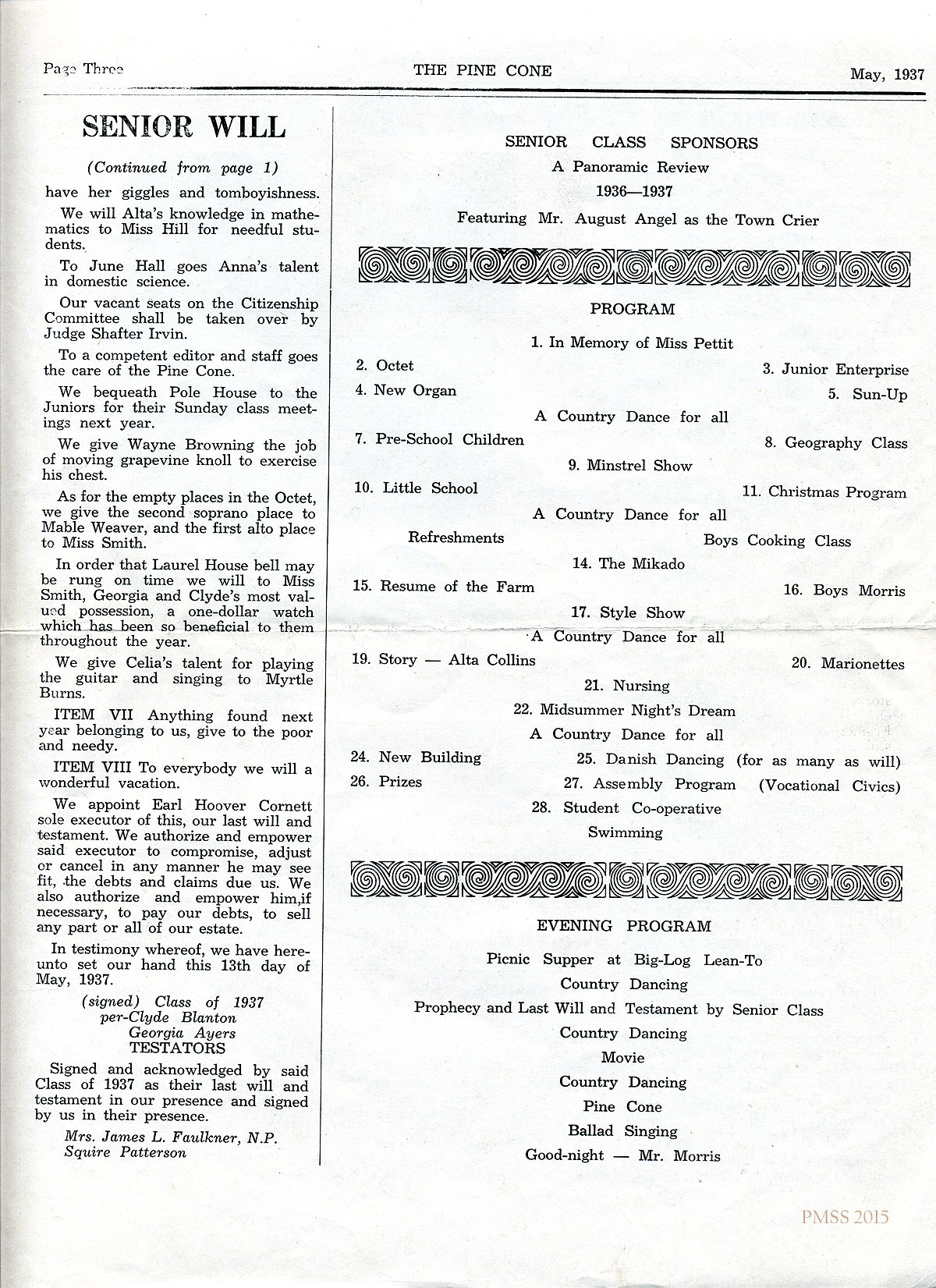 TAGS: Pine Cone 1937 May, student writings, student activities, graduation activities, poems, editorials, Co-op Store