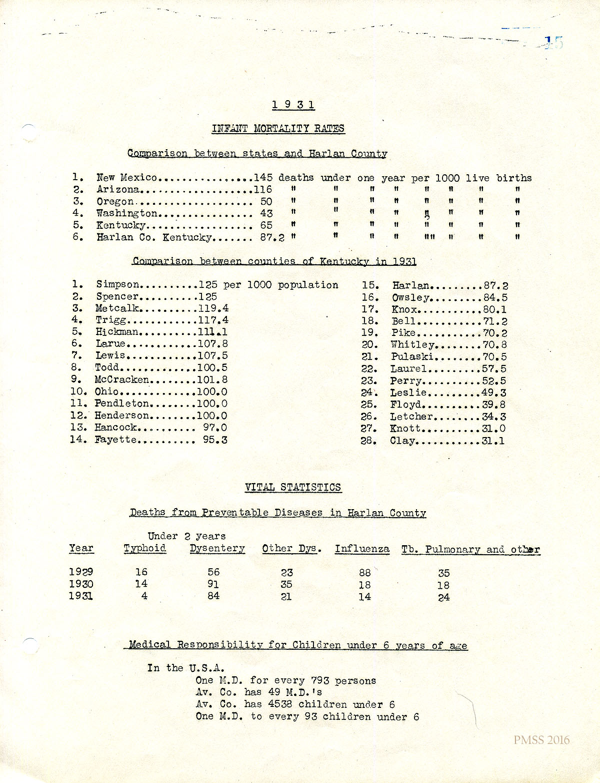 GALLERY: PUBLICATIONS RELATED 1932 Dr. Iva Miller Health Survey of Harlan County