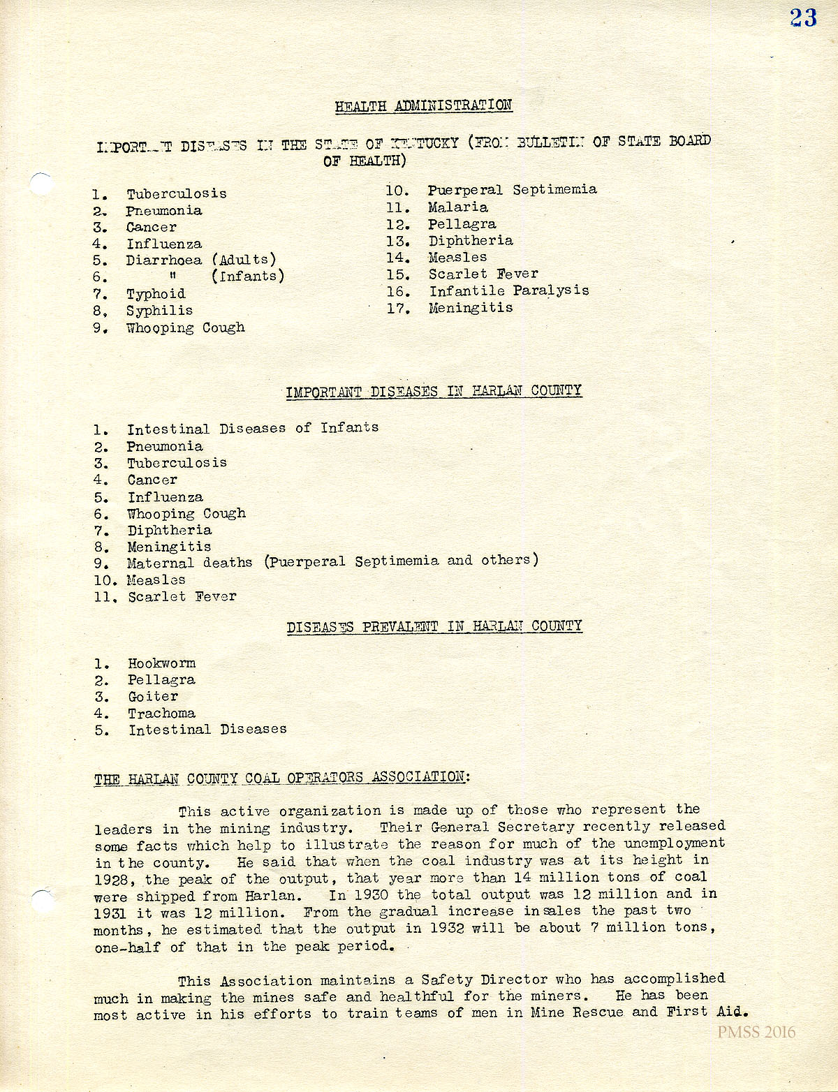 - 023 Health Survey of Harlan County, Kentucky. By Iva M. Miller, M.D. p. 23