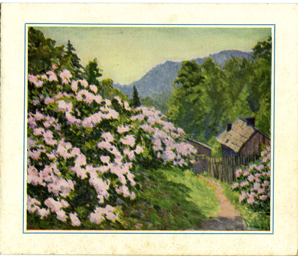 In the original 1947 calendar, a poem of Ruth Elizabeth Campbell accompanied the painting. In this last rendition, the painting is accompanied by a well-known song often heard at Pine Mountain, “The Riddle Song.” The song, sometimes referred to as a lullaby, is indebted to an old English ballad, called Captain Wedderburn’s Courtship, according to the note accompanying it.