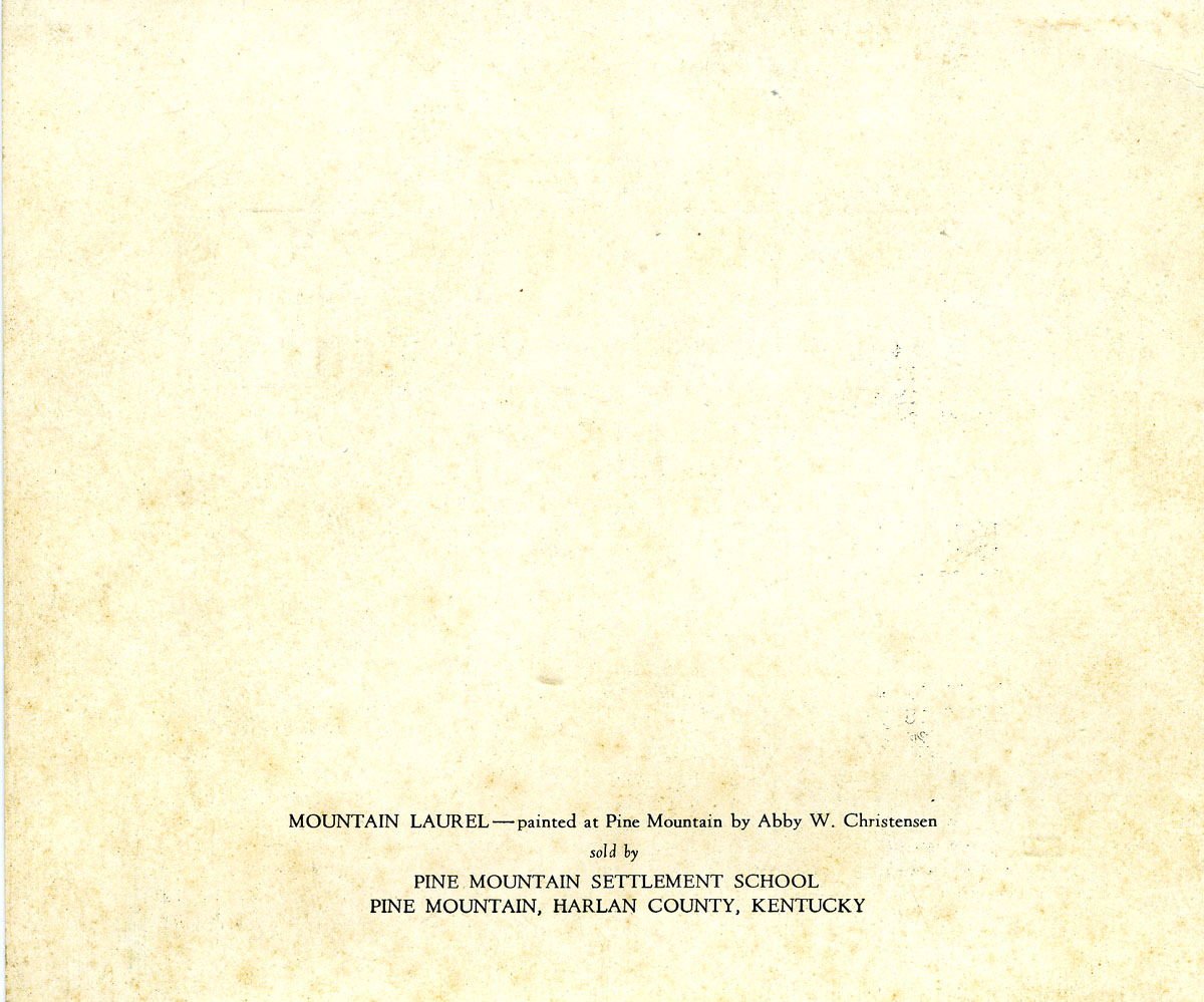 In the 1953 PMSS Calendar, the Christensen painting is used in combination with an appeal for donations and a simple calendar for the year. Abby Winch Christensen’s painting appears to have been a favorite with staff and friends of Pine Mountain during the 1950s.