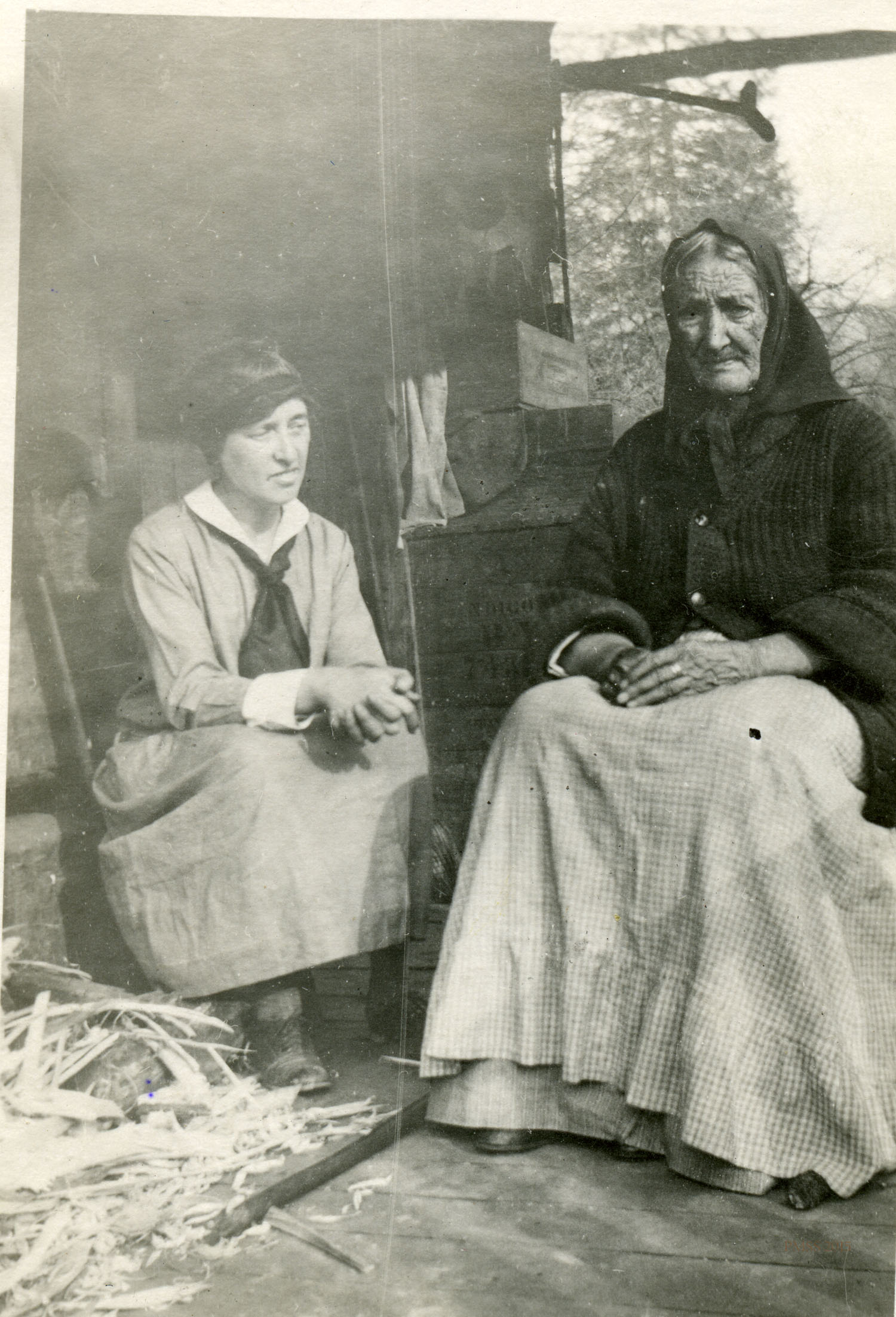- Mrs. Burns and ?Katherine Pettit ? in barnyard. norton_063jpg