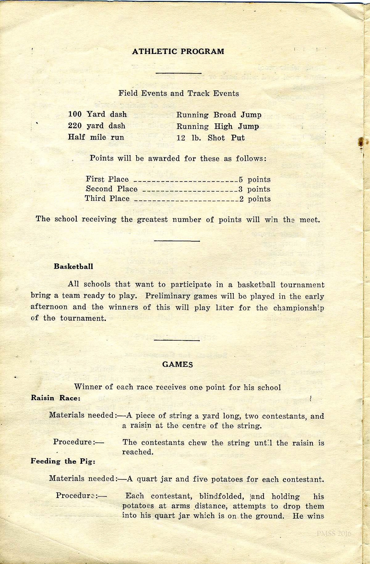 TAGS: 1928 Community Fair Day, fairs, calling contests, ballad singing, games, relays, awards, prizes, garden products, poultry, livestock, cooking, canned goods, vegetables, preserves, home products, flowers, school exhibits, booklets, posters, athletic programs, field events, track events, basketball, games, raisin race, feeding the pig, race of paper cones, three-legged backward race, 4-H Club