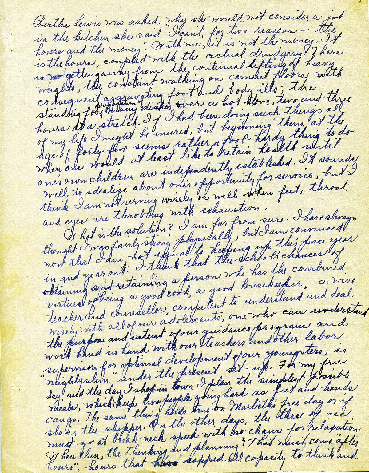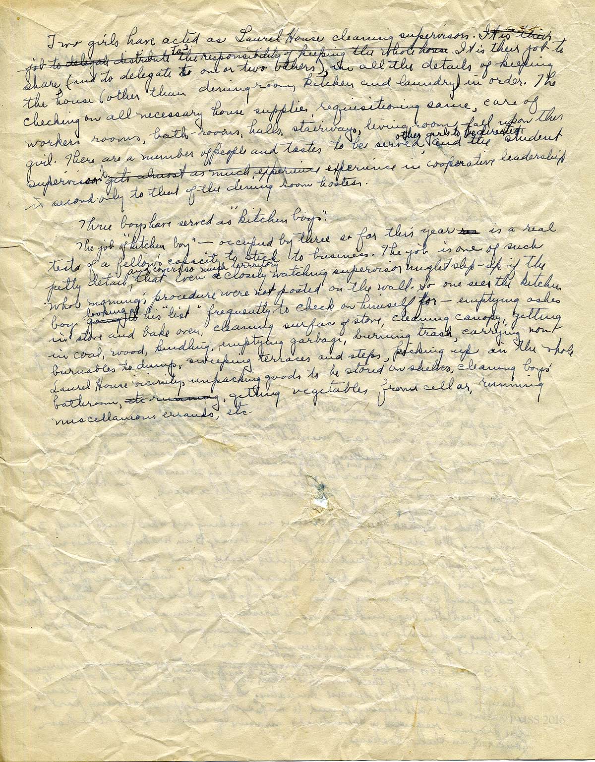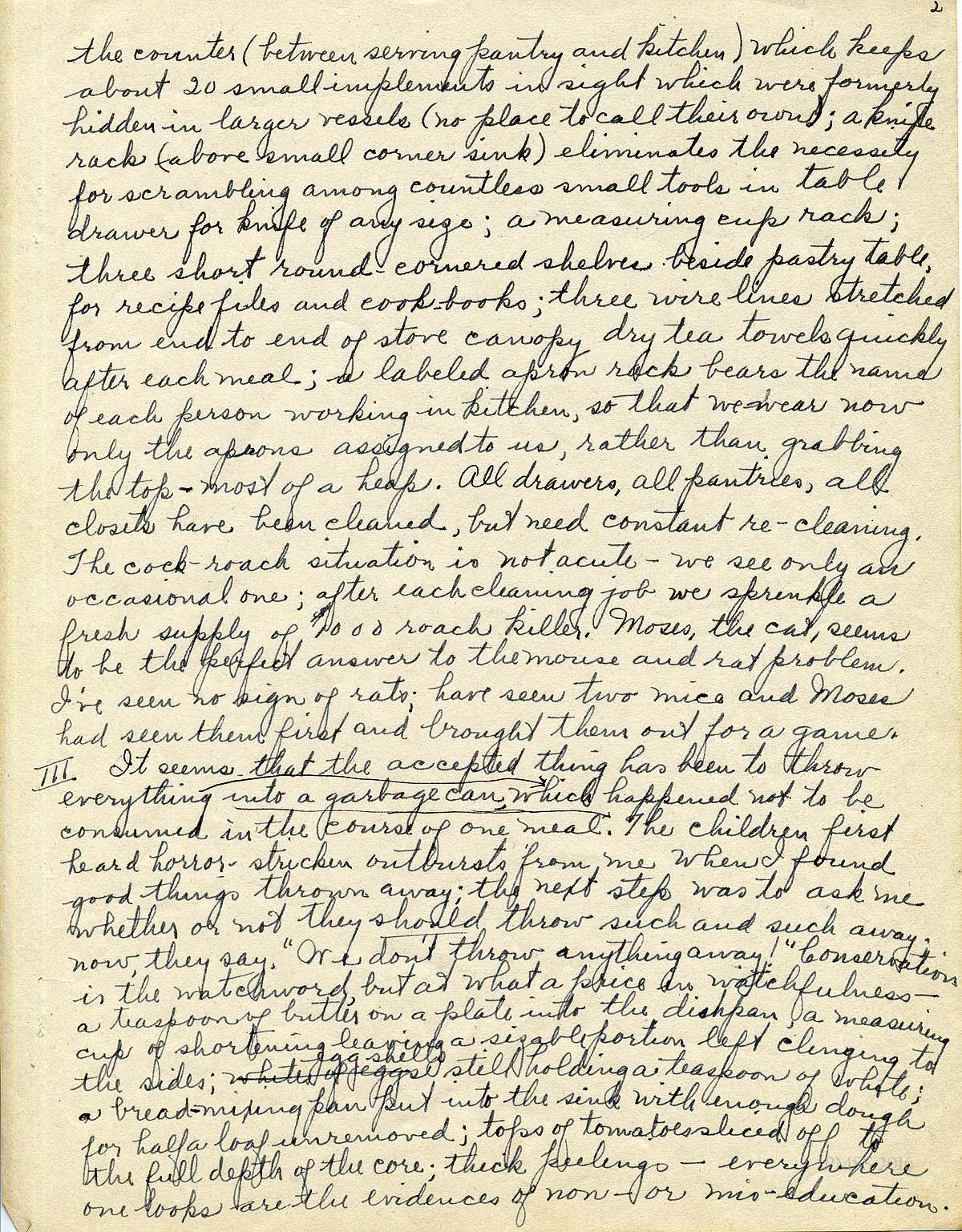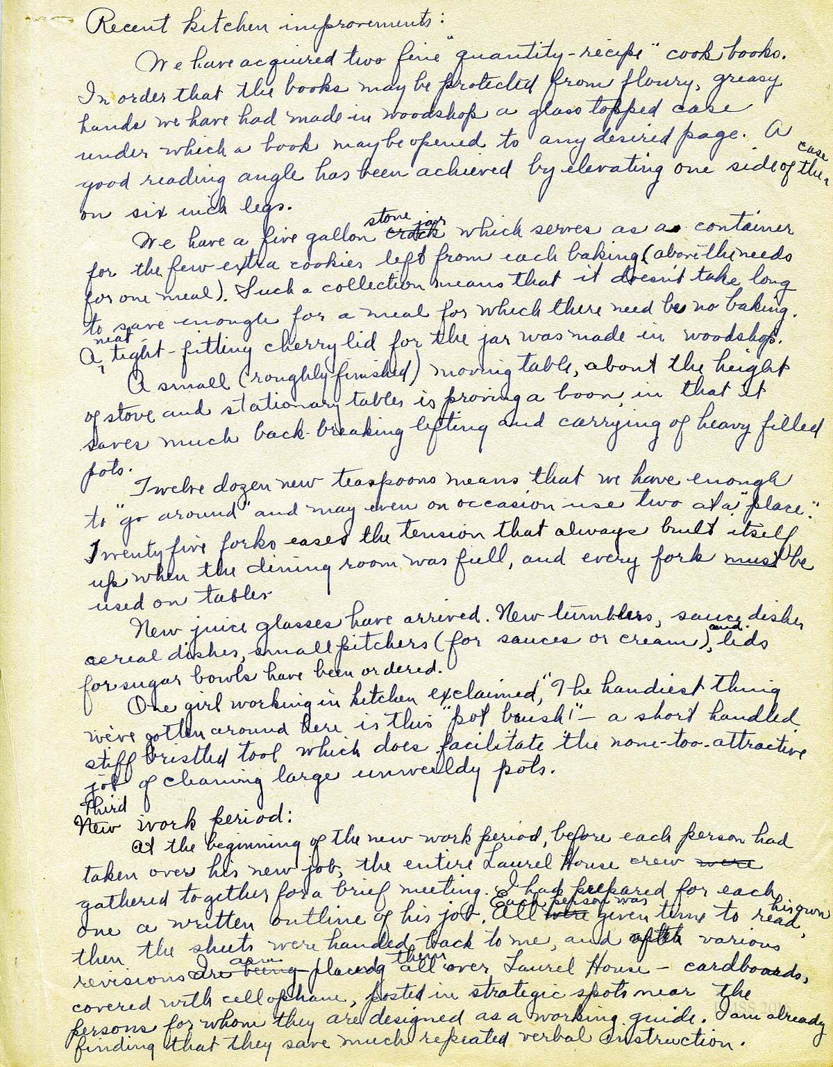 Birdena Bishop’s Kitchen Reports were prepared as part of her responsibilities as a dietician for Pine Mountain Settlement School in addition to her teaching responsibilities.   As the Dietician, she was required to report annually and monthly on the activity of the Kitchen. The reports are full of information on foods purchased, grown, prepared and manners at the table observed and all thing of consequence to managing the Kitchen at the School during the Boarding School years from 1940 to 1944. No small feat during the WWII years!