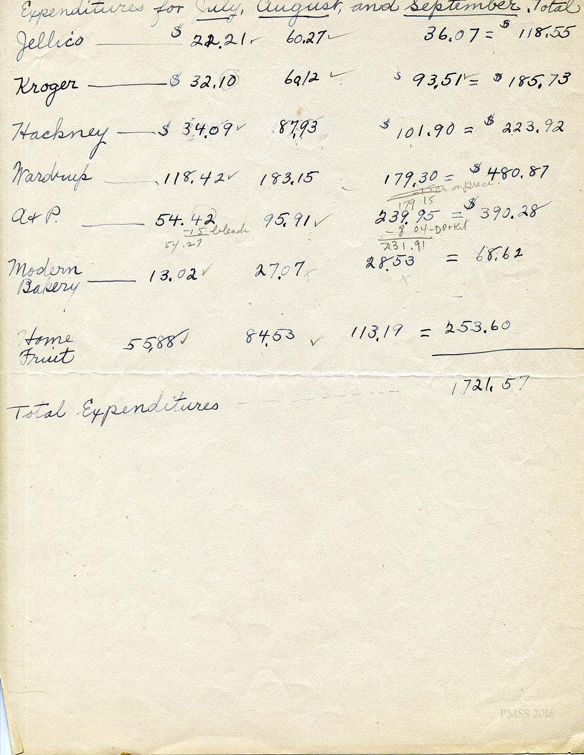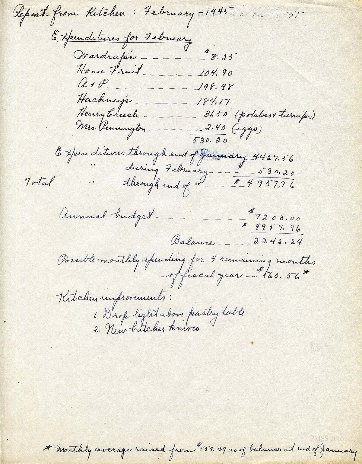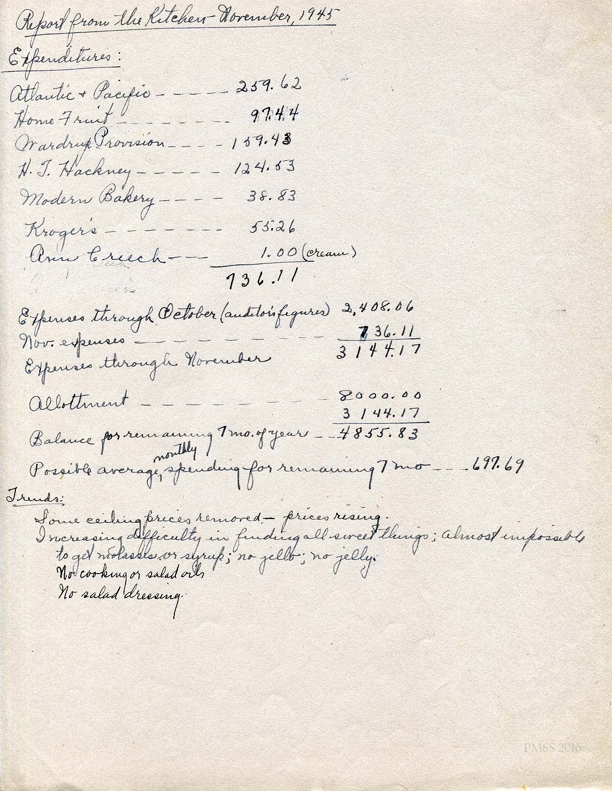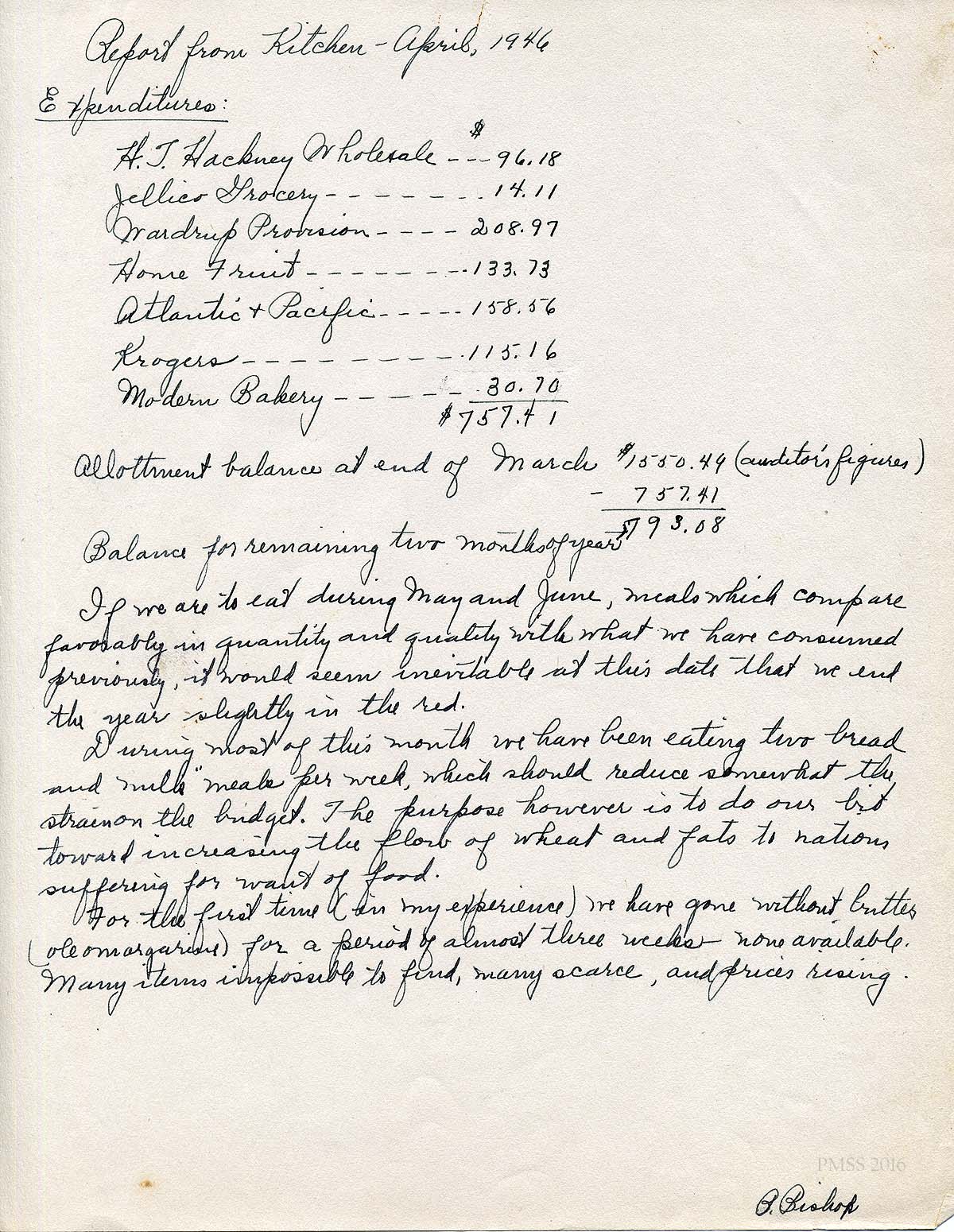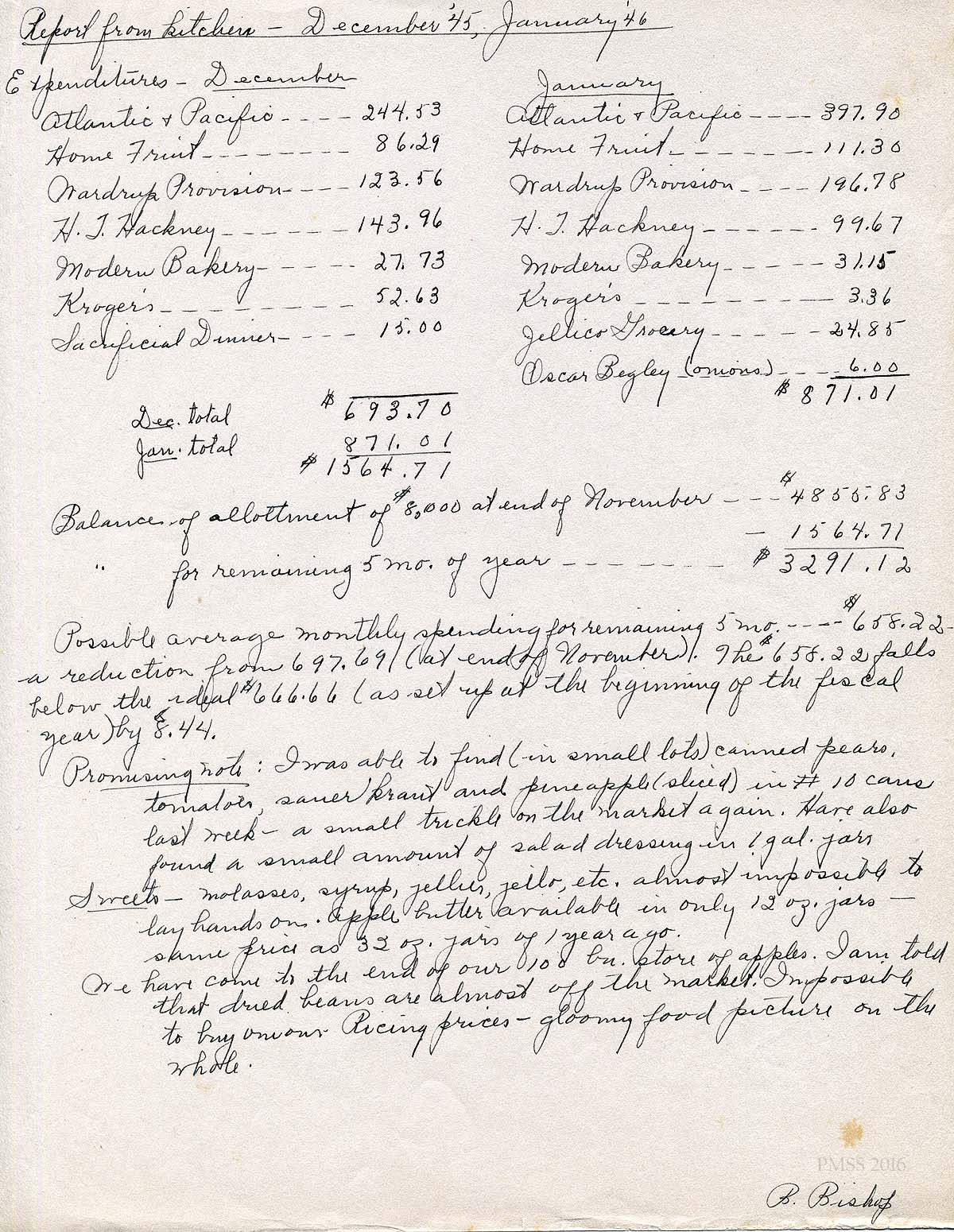 BIRDENA BISHOP Kitchen Reports 1944-1947