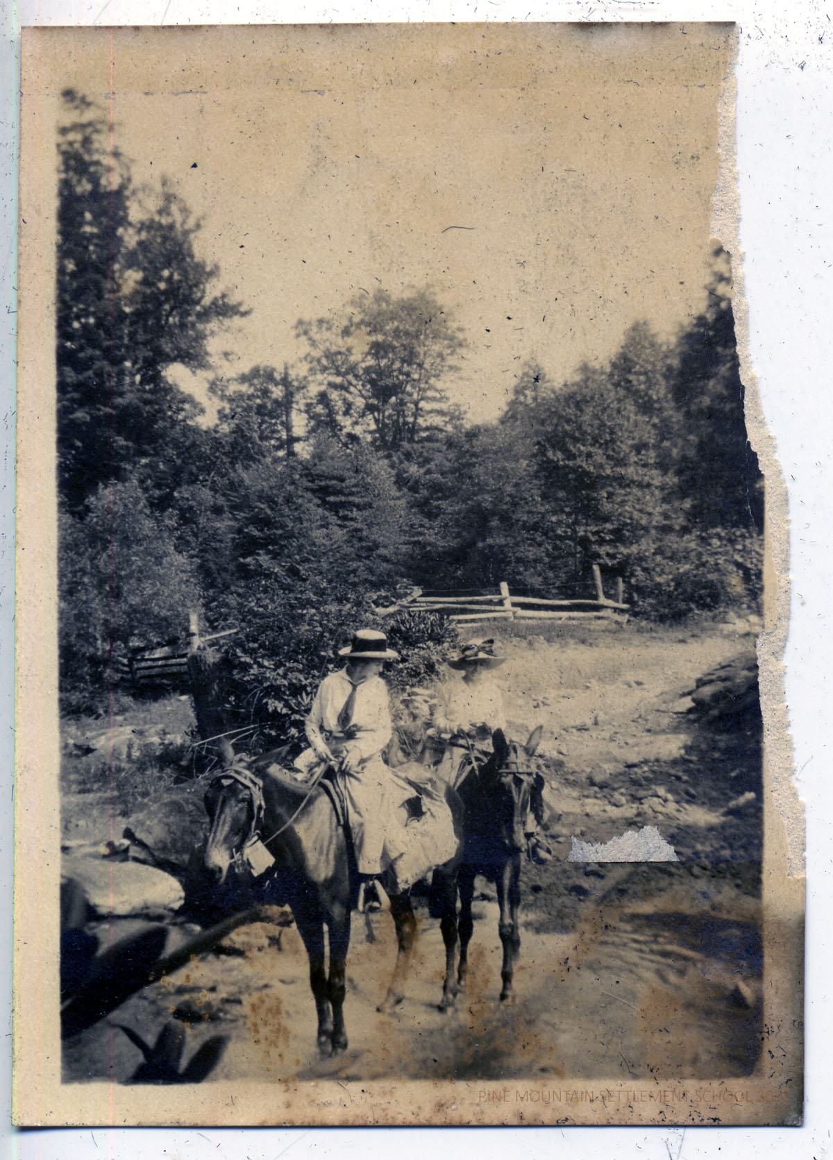 The album was donated to Pine Mountain Settlement School in June 2011 by Angela Melville’s niece, Ann Melville Wilson. The donation included the photograph album as well as newspaper clippings and a small booklet written by Angela Melville in 1957 for her nieces and nephews, called “Woodboo – 1957,” that describes her former home and life.