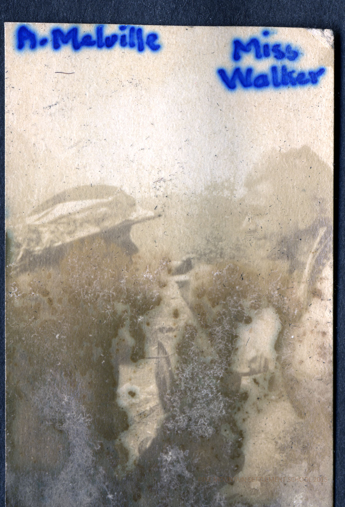 The album was donated to Pine Mountain Settlement School in June 2011 by Angela Melville’s niece, Ann Melville Wilson. The donation included the photograph album as well as newspaper clippings and a small booklet written by Angela Melville in 1957 for her nieces and nephews, called “Woodboo – 1957,” that describes her former home and life.