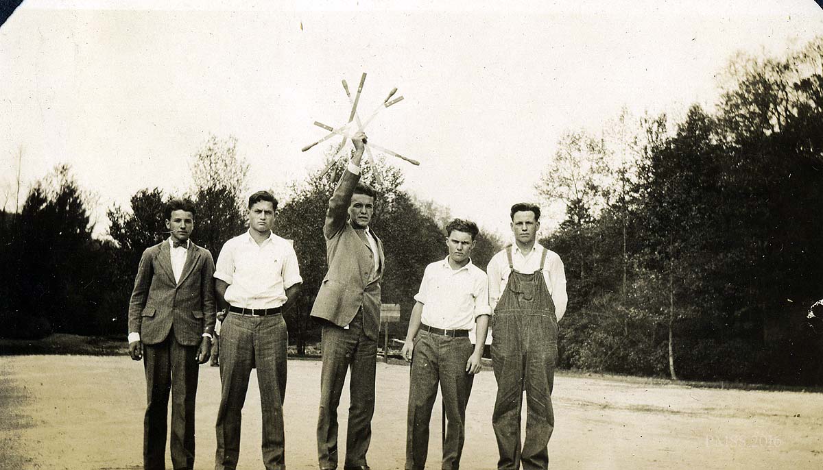 - Sword dancing: Men with rapper swords. Luigi Zande in center? Bassett Album, c. 1928-29. [pmss_bas102.jpg]