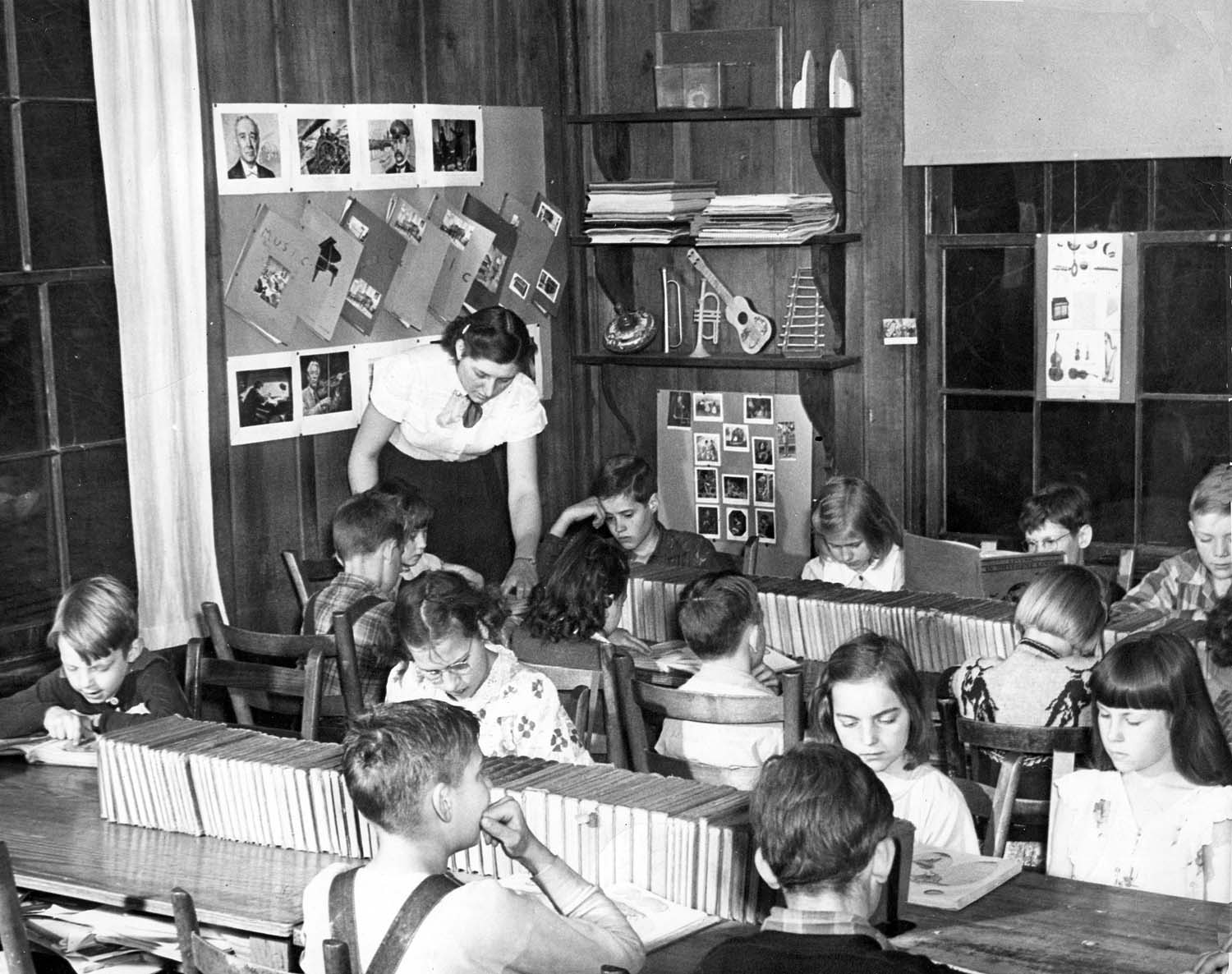 054 VII Life Work – Children & Classes depicts students in the classes of Mrs. Cora Campbell, Mrs. Whitaker, Mrs. Wilson and others. Photographs were largely taken in 1940s and 1950s for School publicity.