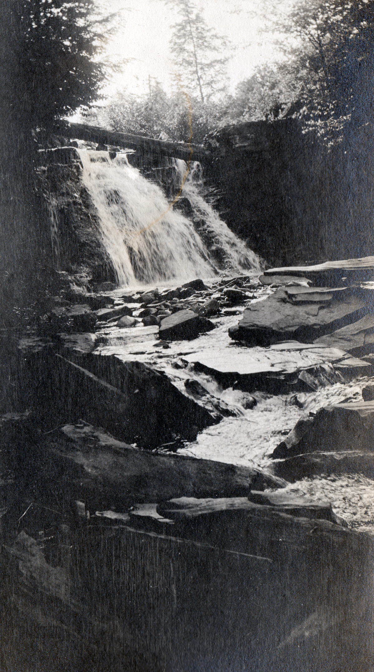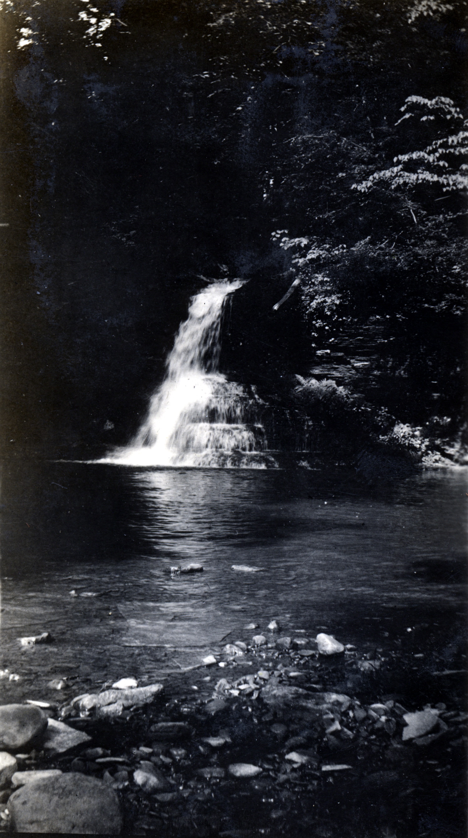 We hated to leave but did leave rather early to get to the falls [Gabes Branch Falls]. It is a perfectly beautiful cascade dropping into a bowl so round it doesn’t seem natural. Looks like a musical comedy setting I have seen, the moon here just as unreal as that too.