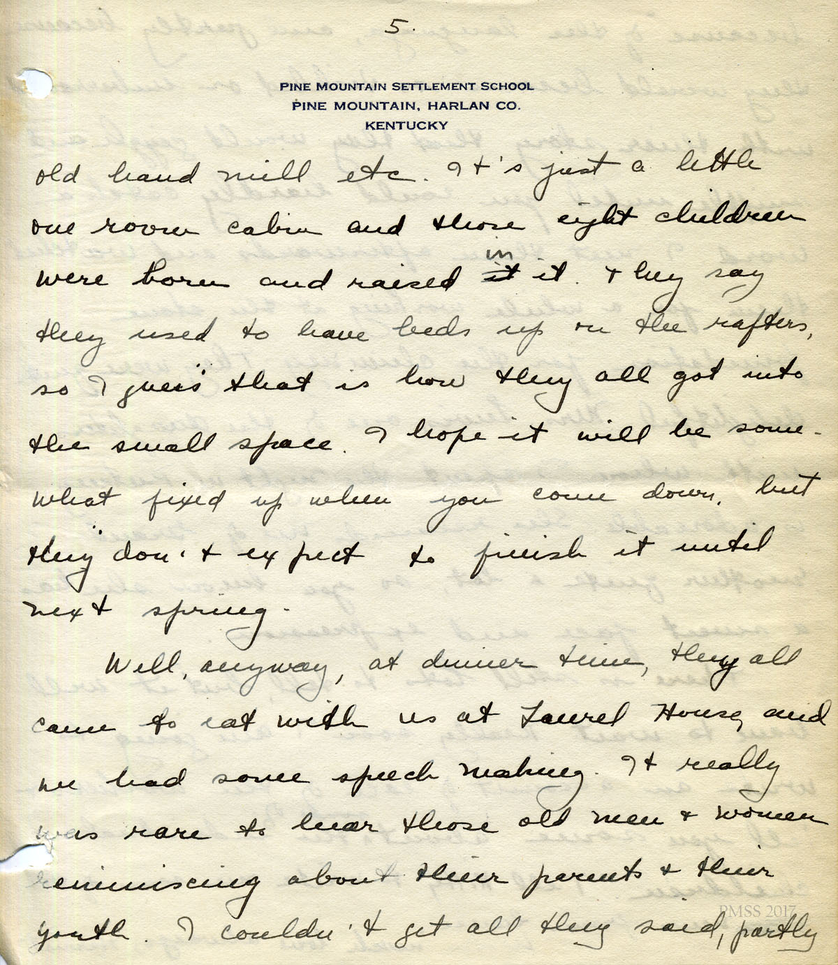 Harriet’s “journal” — the compilation of her letters to her family and friends — chronicles a close and often very personal view of a first-comer to Pine Mountain Settlement School. Her letters track her adaptation to the values, lifestyle, and relationships during the early years of the settlement institution, just following the death of co-founder Ethel de Long Zande. Her letters are crammed with observations of people, schedules, the beauty of the mountains, the language, and especially the food. Her letters provide microscopic details that many of her colleagues failed to record or notice. While the time-span of the letters, only 1928 to 1930 is short, her account is the next best thing to being there and her enthusiasm infectious.