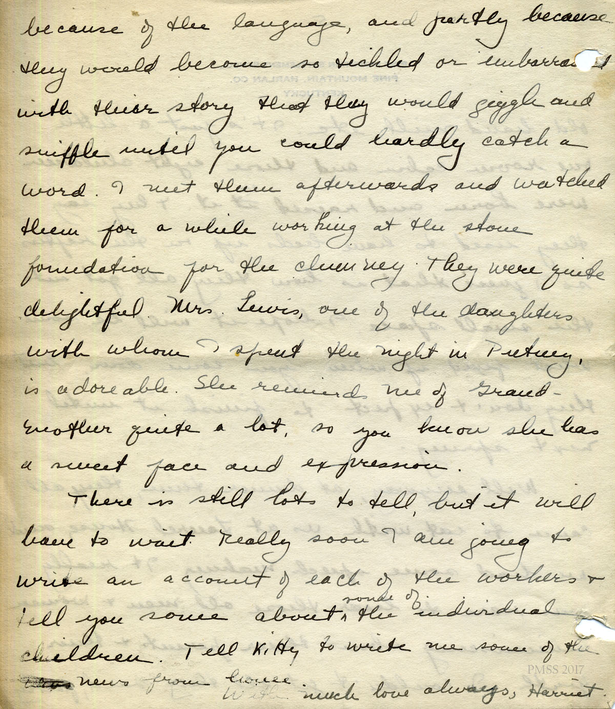 For TRANSCRIPTIONS of her correspondence while at PMSS, see: