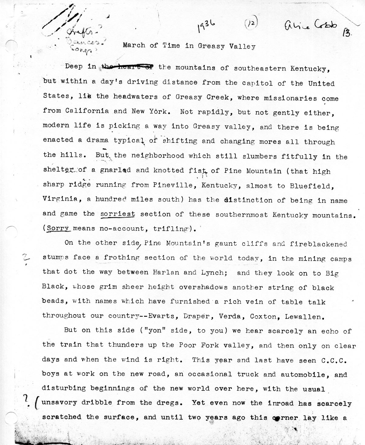 TRANSCRIPTION: ALICE COBB STORIES March of Time in Greasy Valley, 1936