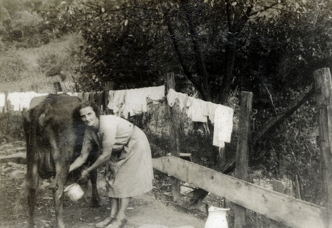 - Angela Melville Album. “‘Aunt Jude’ Turner, Big Laurel, about 1925,” feeding sheep. [nace_II_album_008.jpg]