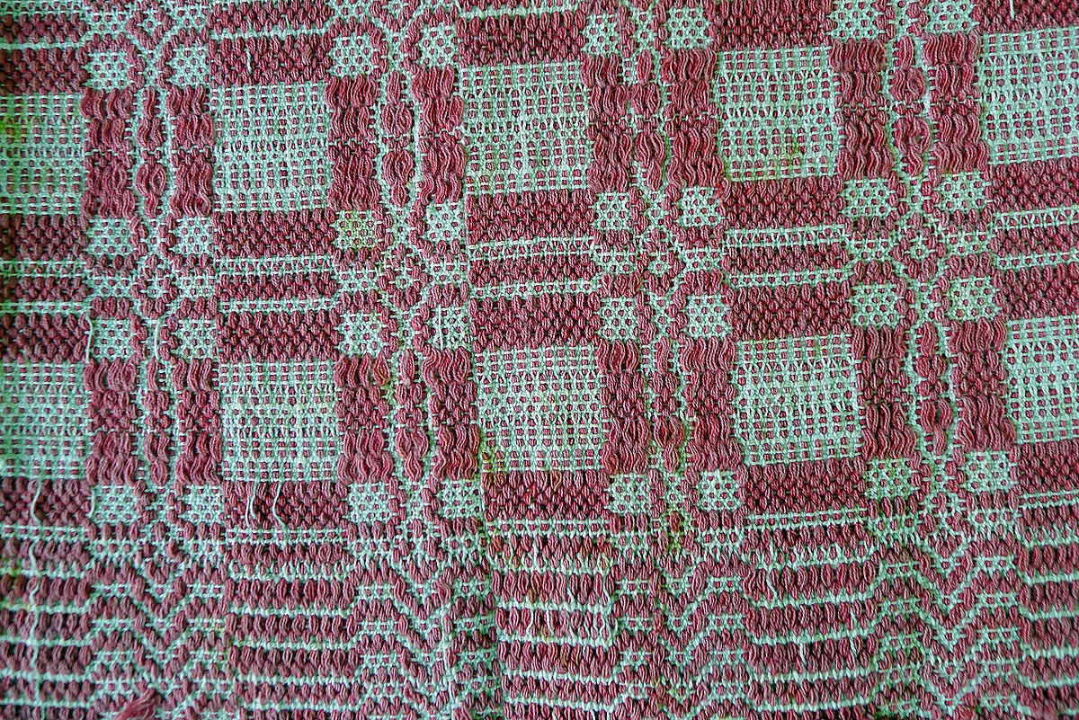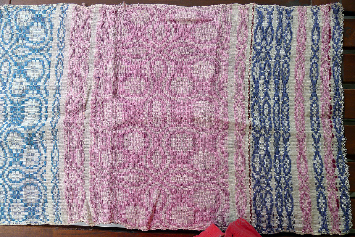 Allen Eaton tells us that there are three types of coverlets which can be woven on a mountain loom: