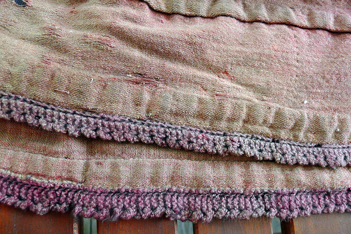 Lindsey-woolsey skirt with “tatted” or crochet edge red madder [?]