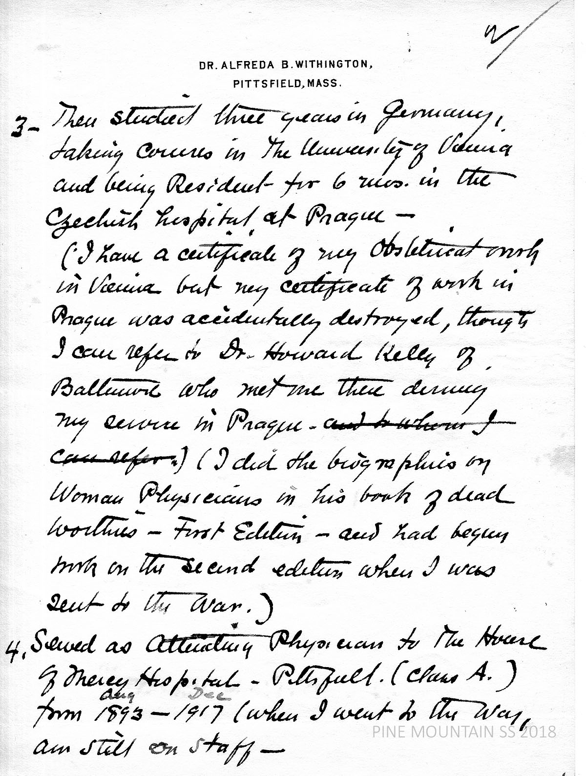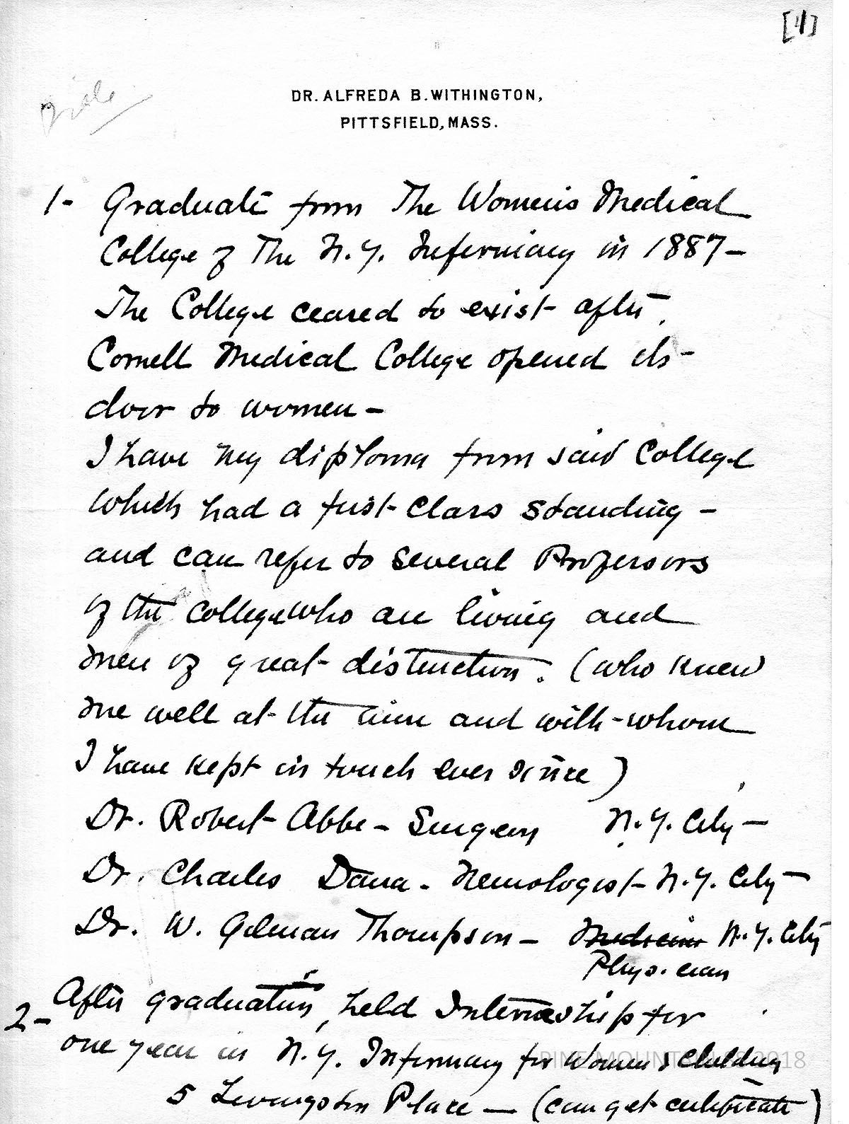 Dr. Alfreda Withington Correspondence