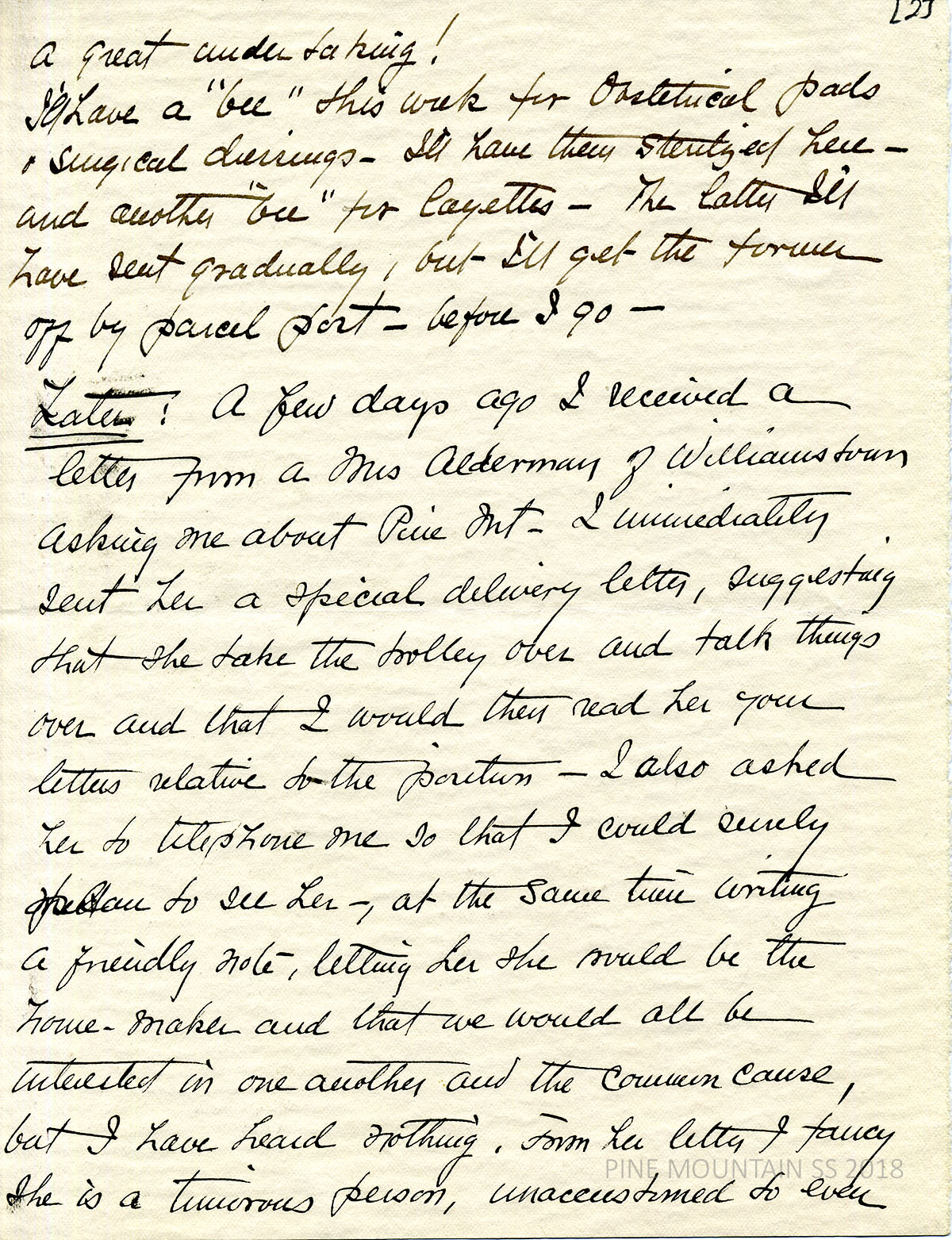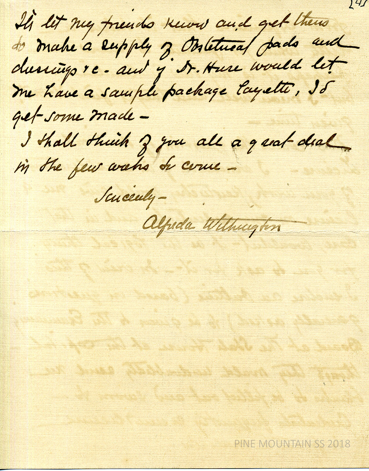 [withington_a_044.jpg] [n.d.] Handwritten 3-page letter to Zande from Withington. Additional questions: using telegrams; packing books. [044a] Page 2. Hosting “bees” to sew medical dressings and layettes. Responded to Mrs. Alderman’s inquiries about the housekeeper position and has heard nothing from her since. [044b] Page 3. Needs to rest after arriving; may need Dr. Grant’s dental care.
