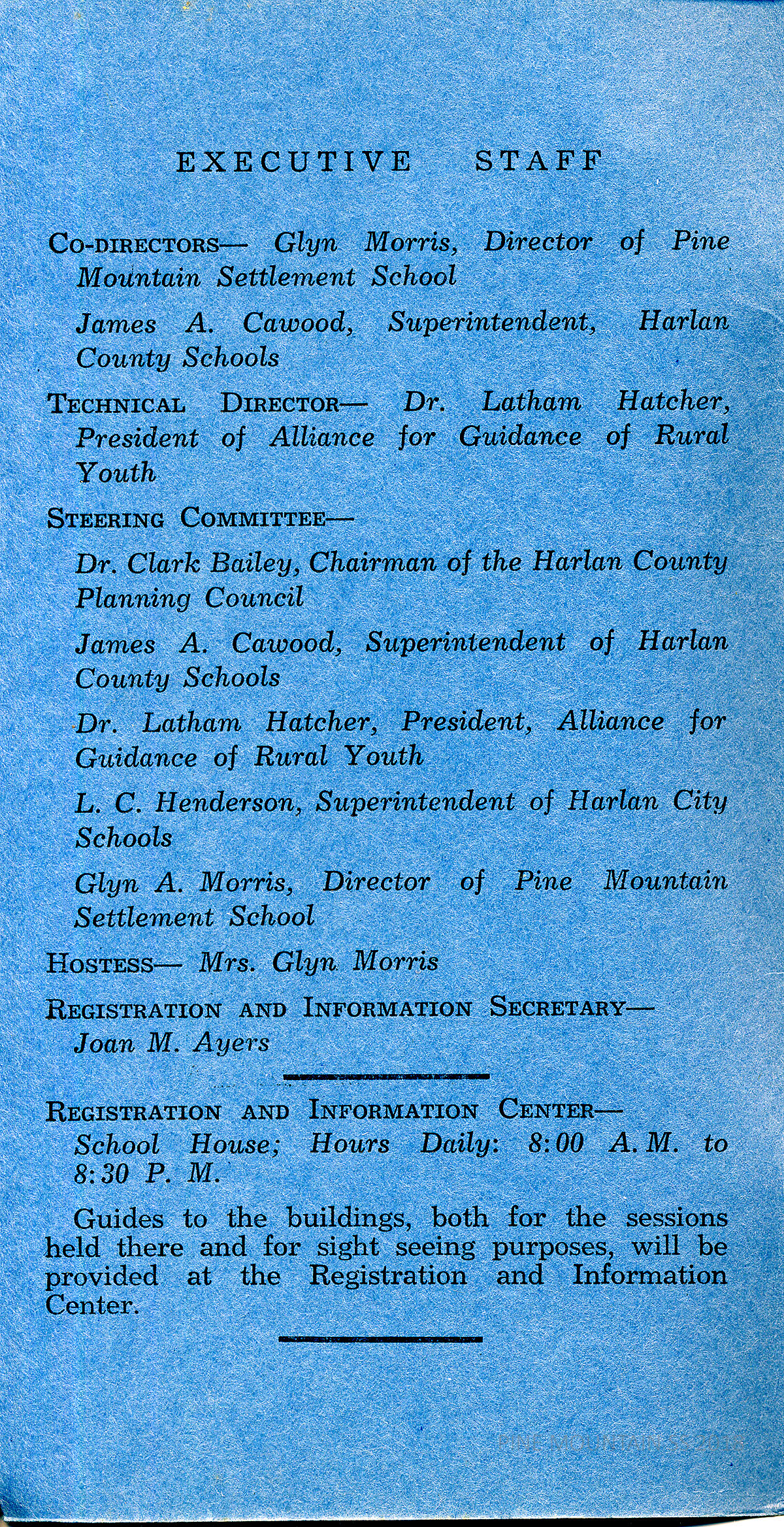 TAGS: Rural Youth Guidance Institute, Harlan County, Kentucky, Pine Mountain Settlement School, Glyn Morris, Harlan County Superintendent of Schools, youth guidance, rural schools, educational guidance, handbooks
