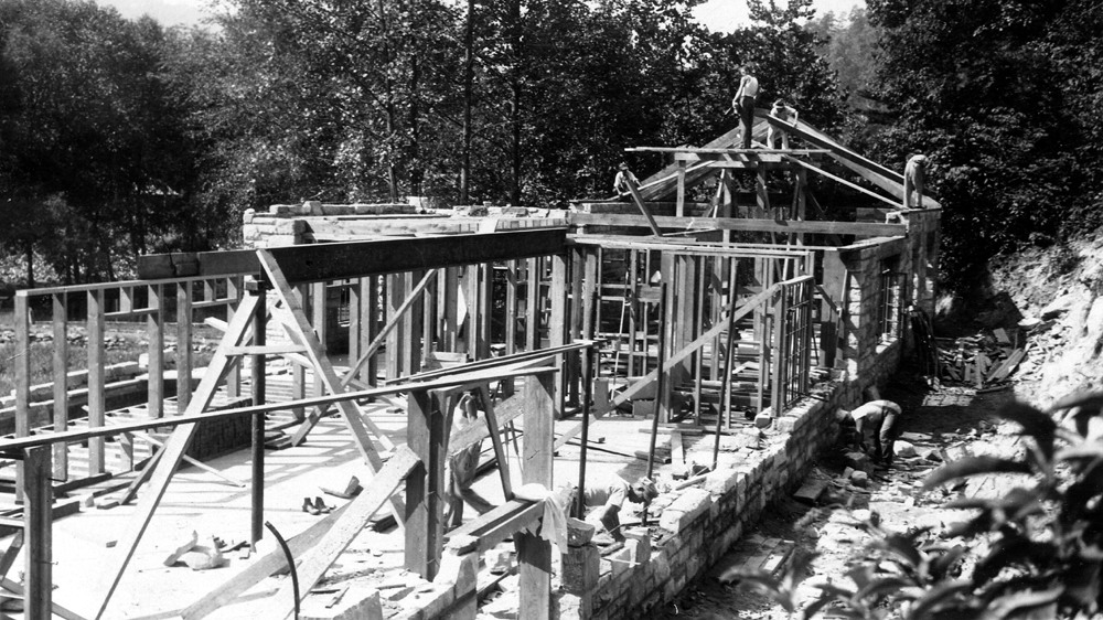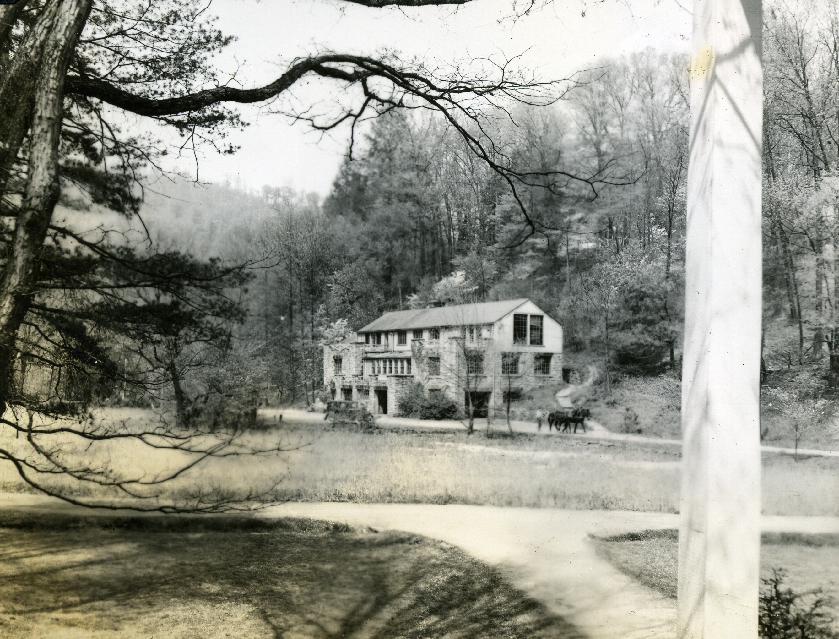 Draper Industrial Arts Building, was constructed to replace the Boy’s Industrial Building which burned in 1935. Constructed and formally named in 1936 the Jessie Preston Draper Building to honor the generous donation of Jessie Preston Draper and her daughter Helen Draper Ayer that funded the structure. The architect, Mary Rockwell Hook, the School’s appointed architect, designed the structure, perhaps strongly influenced by Darwin D. Martin, the Chair of the Board of Trustees who was a close friend of Frank Lloyd Wright. The construction of the much larger building took many months to gather funding and to construct and remains the central building on the Pine Mountain Settlement School campus for instruction and workshops.